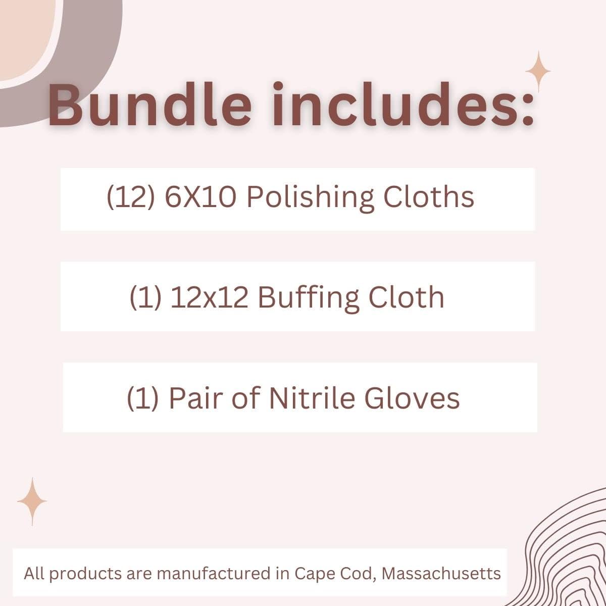 - CONTAINS: Twelve 6 x 12 inch cloths, one buffing cloth, and a pair of reusable nitrile gloves