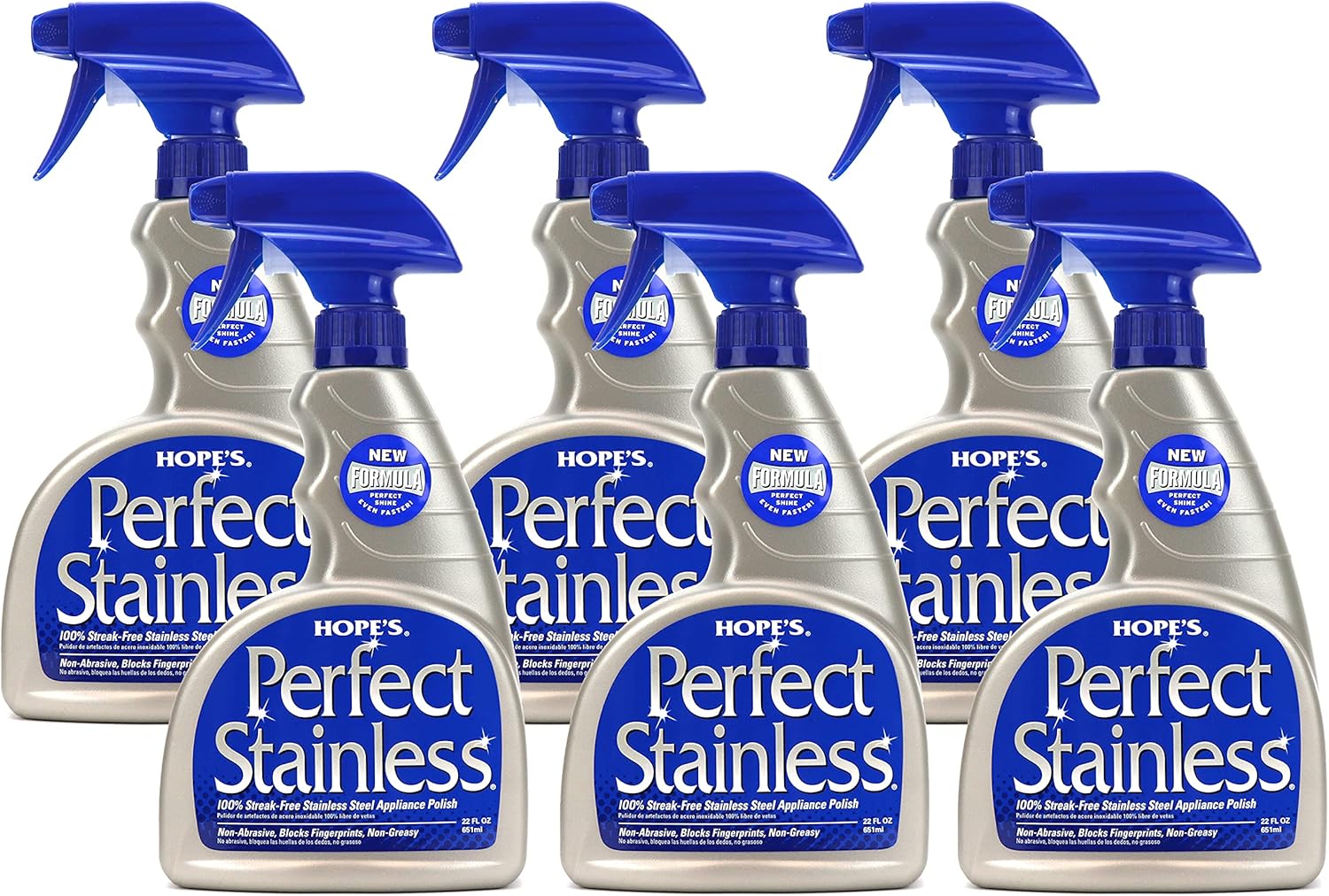 HOPE'S Perfect Stainless Steel Cleaner Streak-Free Self-Polishing Formula, Blocks Fingerprints, Pack of 6, 22 Ounce, 132 Fl Oz