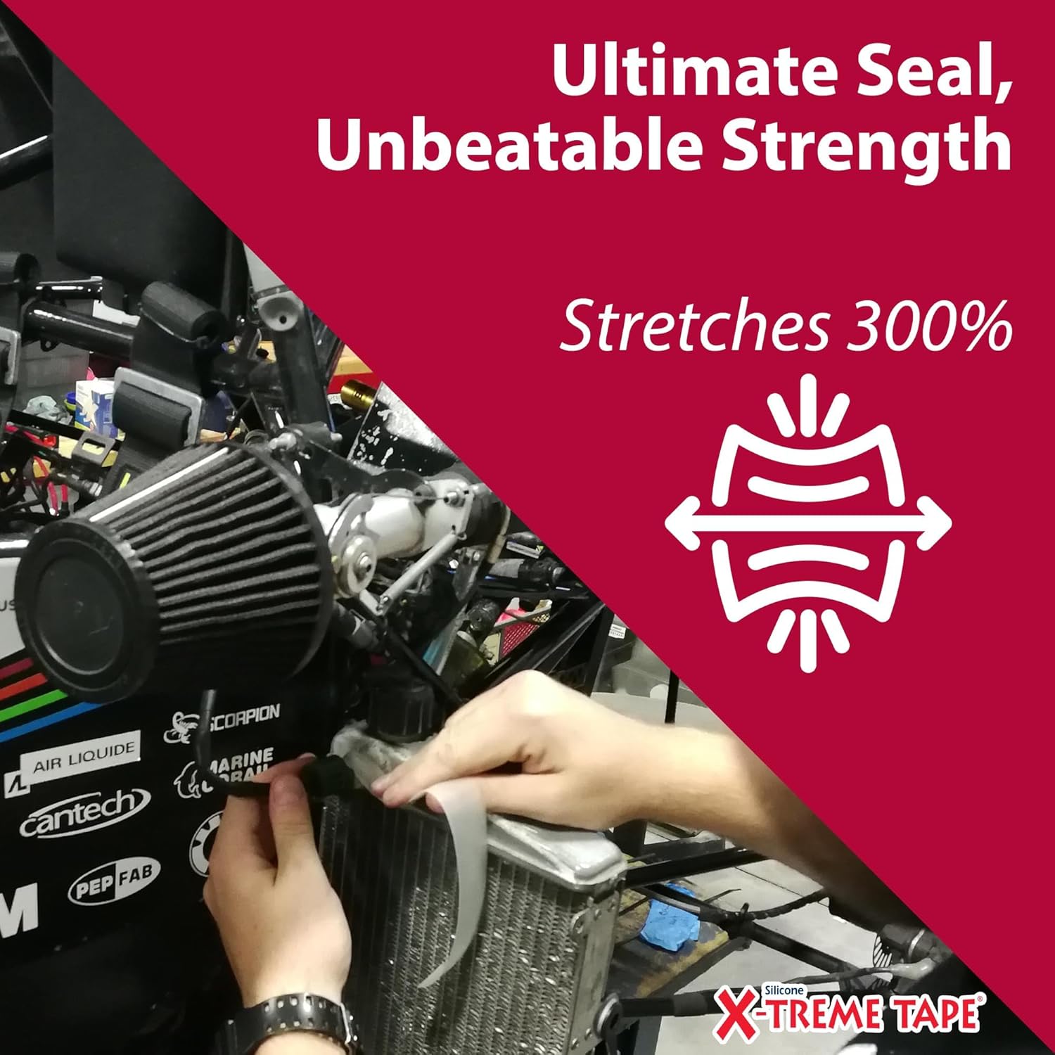 - EASY TO USE FOR QUICK, EFFECTIVE REPAIRS: Simply stretch the tape up to 300% for a tight, secure fit over both thin and thick surfaces. The self-fusing design eliminates the need for adhesive and leaves no sticky residue, ensuring a clean and effective finish every time.