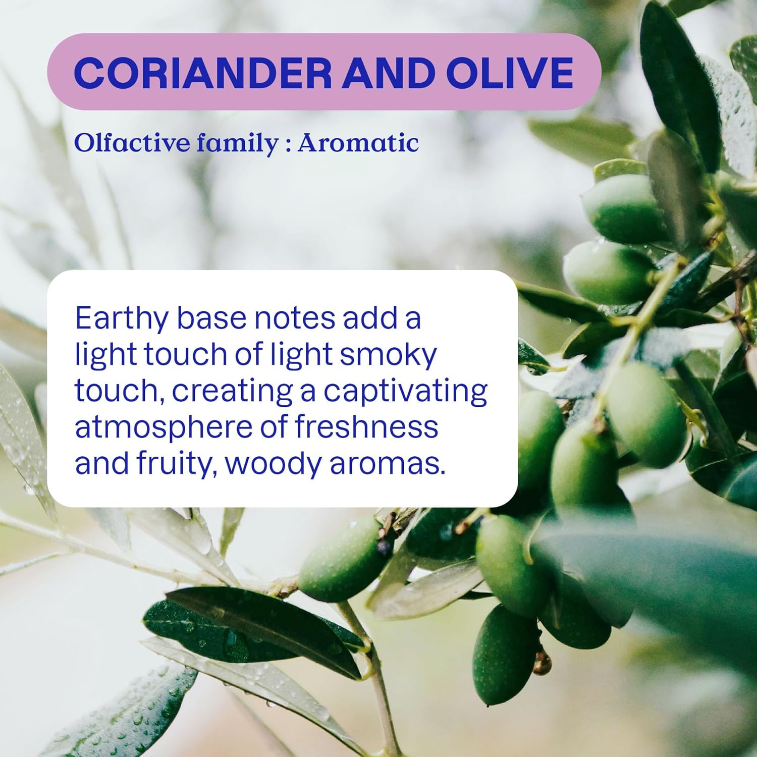 - Scent : Coriander & Olive