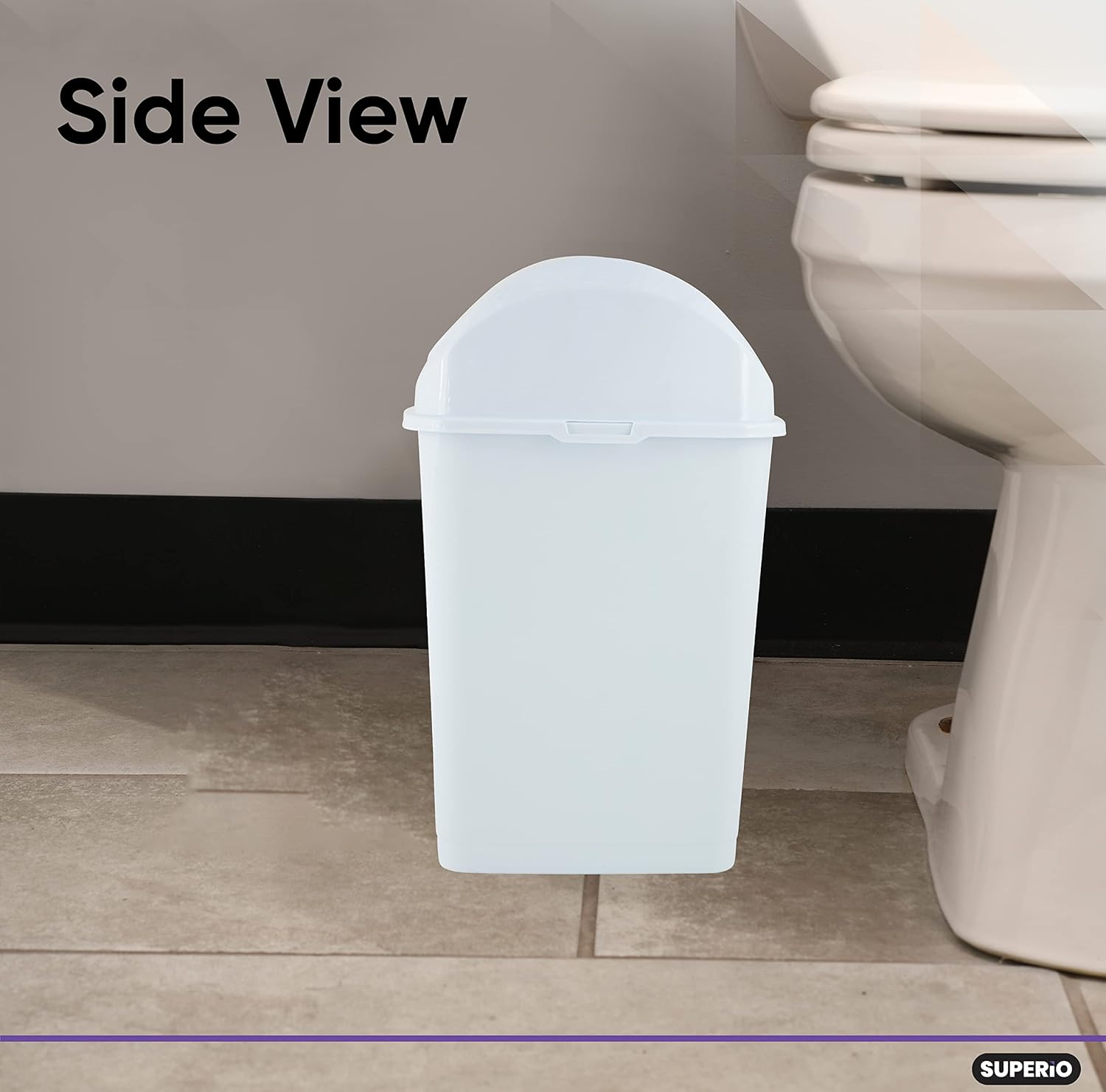 Superio Small 2.5 Gallon Plastic Trash Can with Swing Top Lid, Compact Slim Waste Bin for Under Desk, Office, Bedroom, Bathroom, Dorm Room, 10 Qt. Portable Garbage Can (White)
