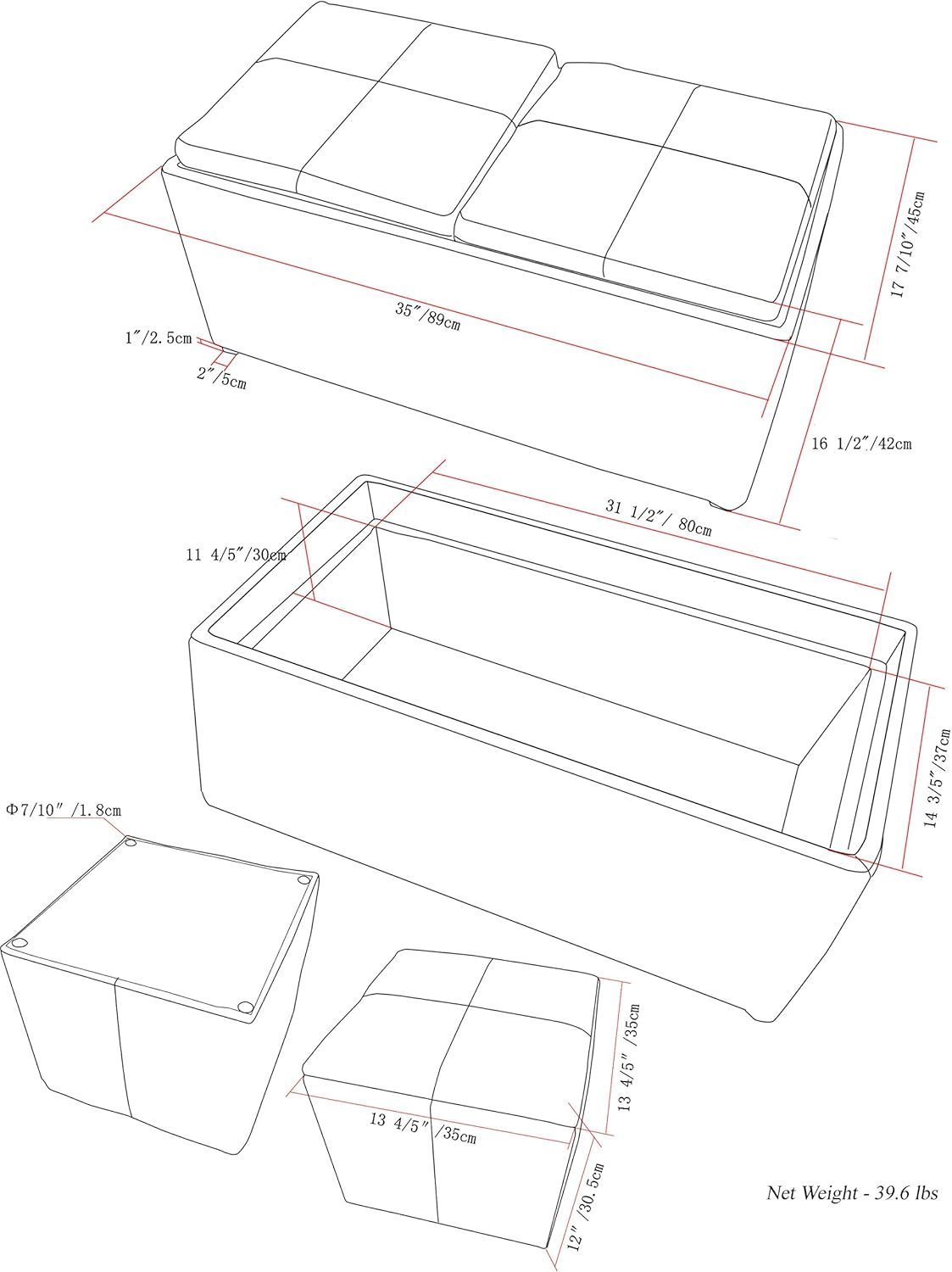 - DIMENSIONS: 35"W x 17.7"D x 16.5"H