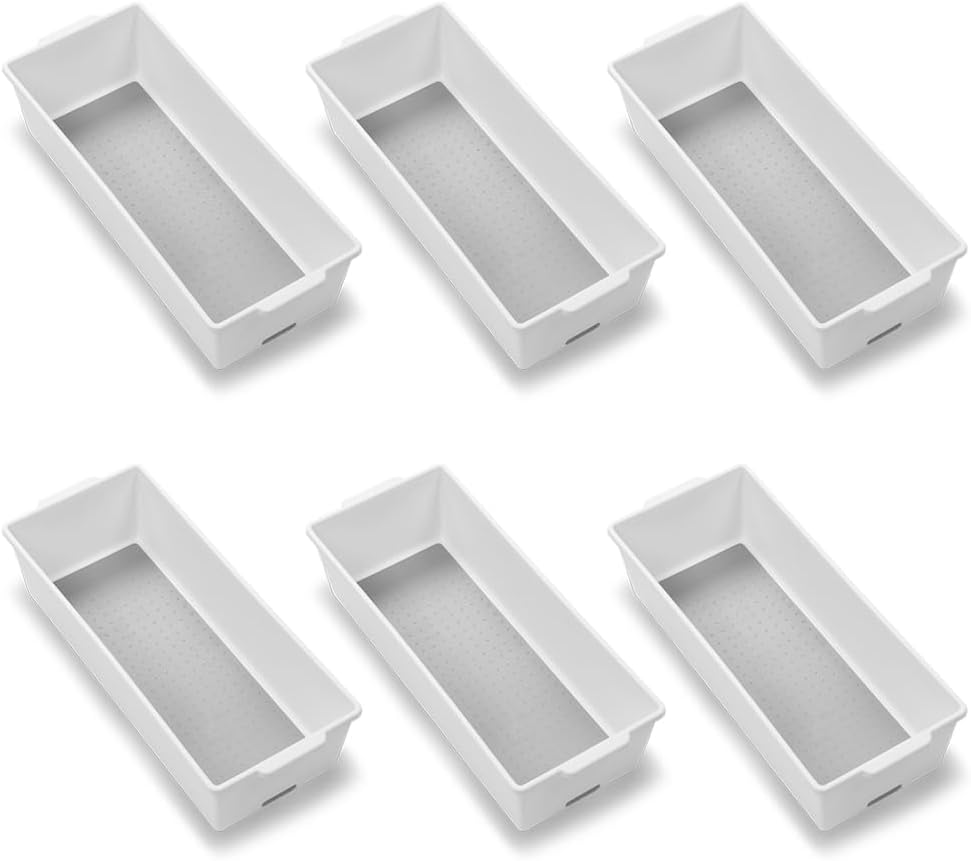 - NONSLIP FEET AND BOTTOM: Features nonslip rubber feet to prevent the bin from shifting in storage and a dotted soft-grip bottom to keep your items neatly in place