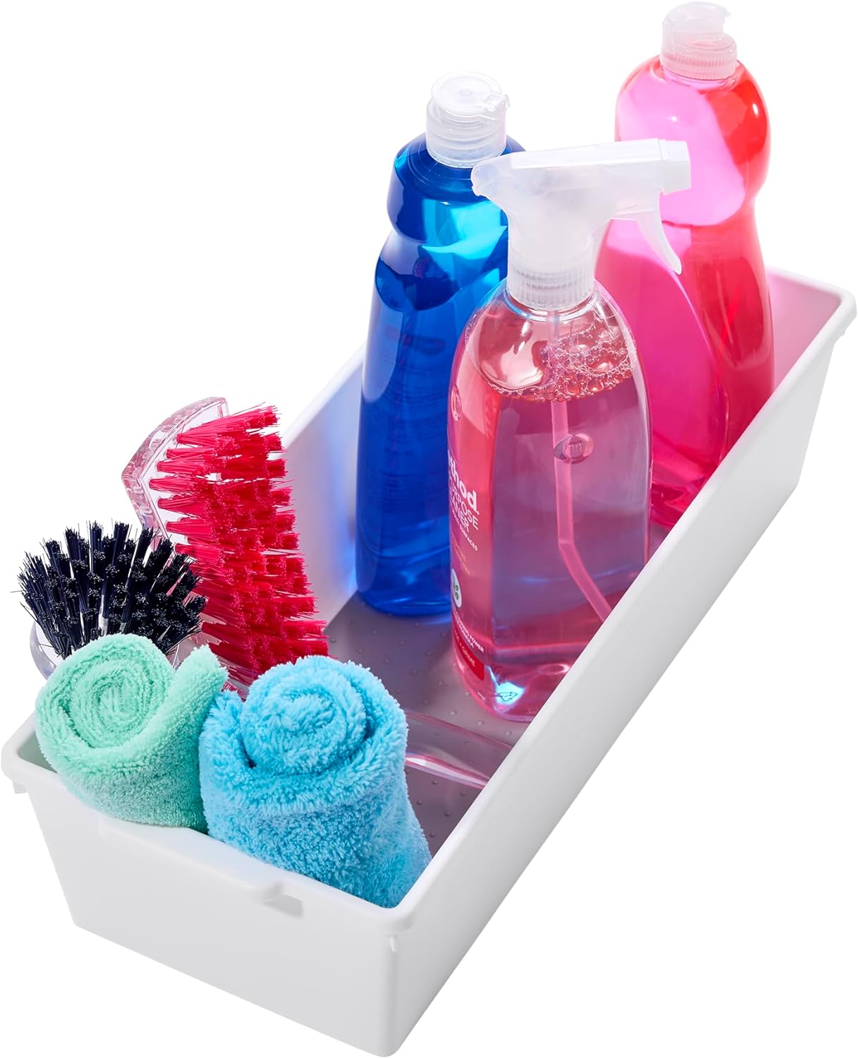 Madesmart Plastic Multipurpose Storage Organizer Deep Bin with Handles, Portable Under Sink and Cabinet Storage Bin, Large, White