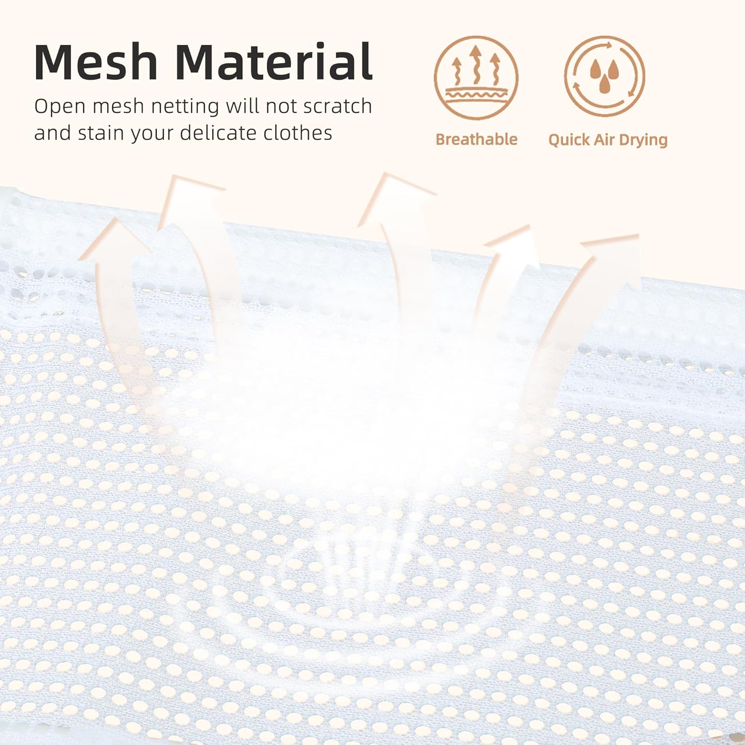 - 【Mesh Design & Fast Drying】The open mesh netting prevents scratching and staining of delicate clothes. This sweater drying rack flat ensures airflow for quick drying and allows sweaters, delicate garments, pillows, and toys to lay flat while drying.