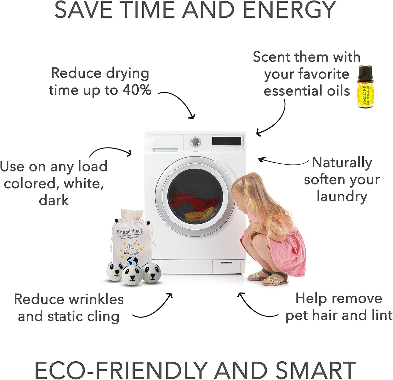 Friendsheep Wool Dryer Balls 6 Pack XL Organic Premium Reusable Cruelty Free Handmade Fair Trade No Lint Fabric Softener - Panda Pack