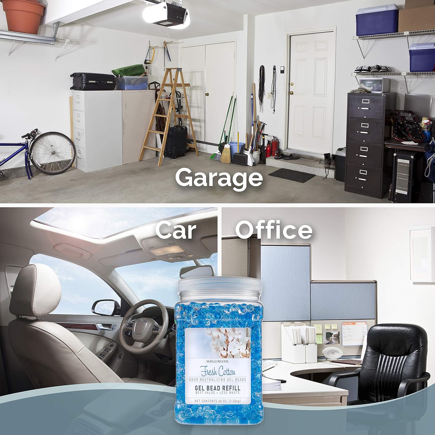 SMELLS BEGONE Odor Eliminator Gel Bead Value Pack - 72 oz - Air Freshener - Made with Essential Oils - Eliminates Odors in Bathrooms, Pet Areas, Cars, & Boats - Fresh Cotton Scent