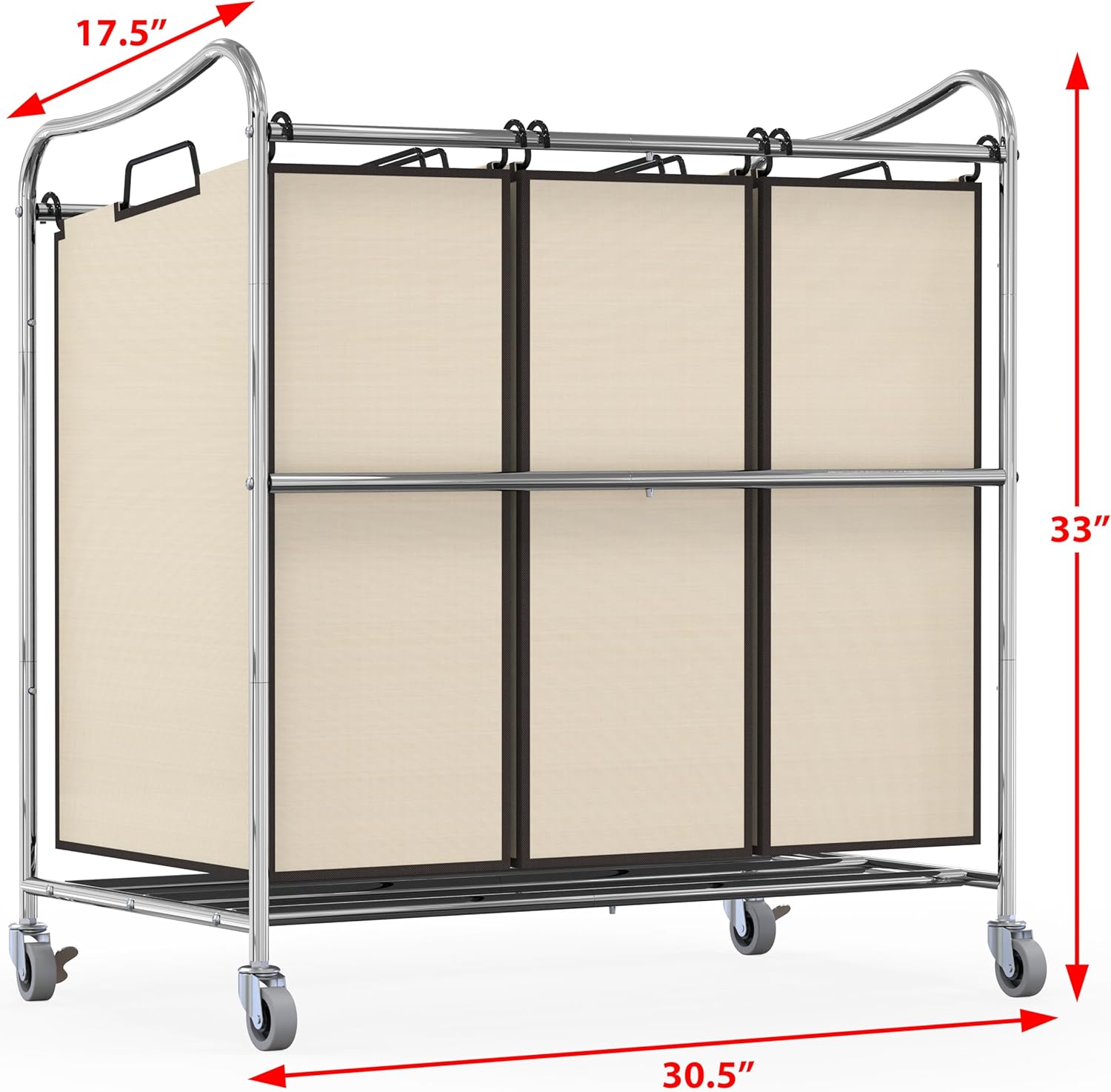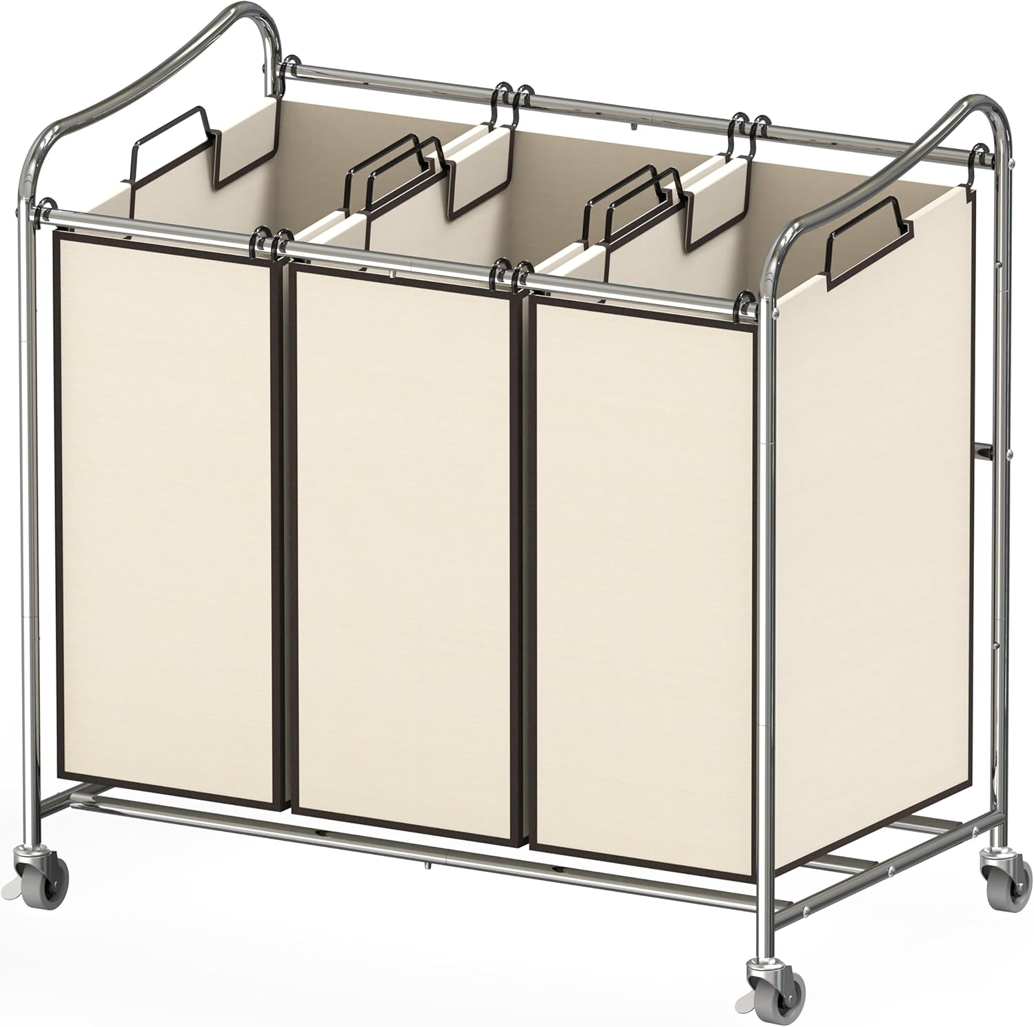 Simple Houseware Heavy-Duty 3-Bag Laundry Sorter Cart, Chrome