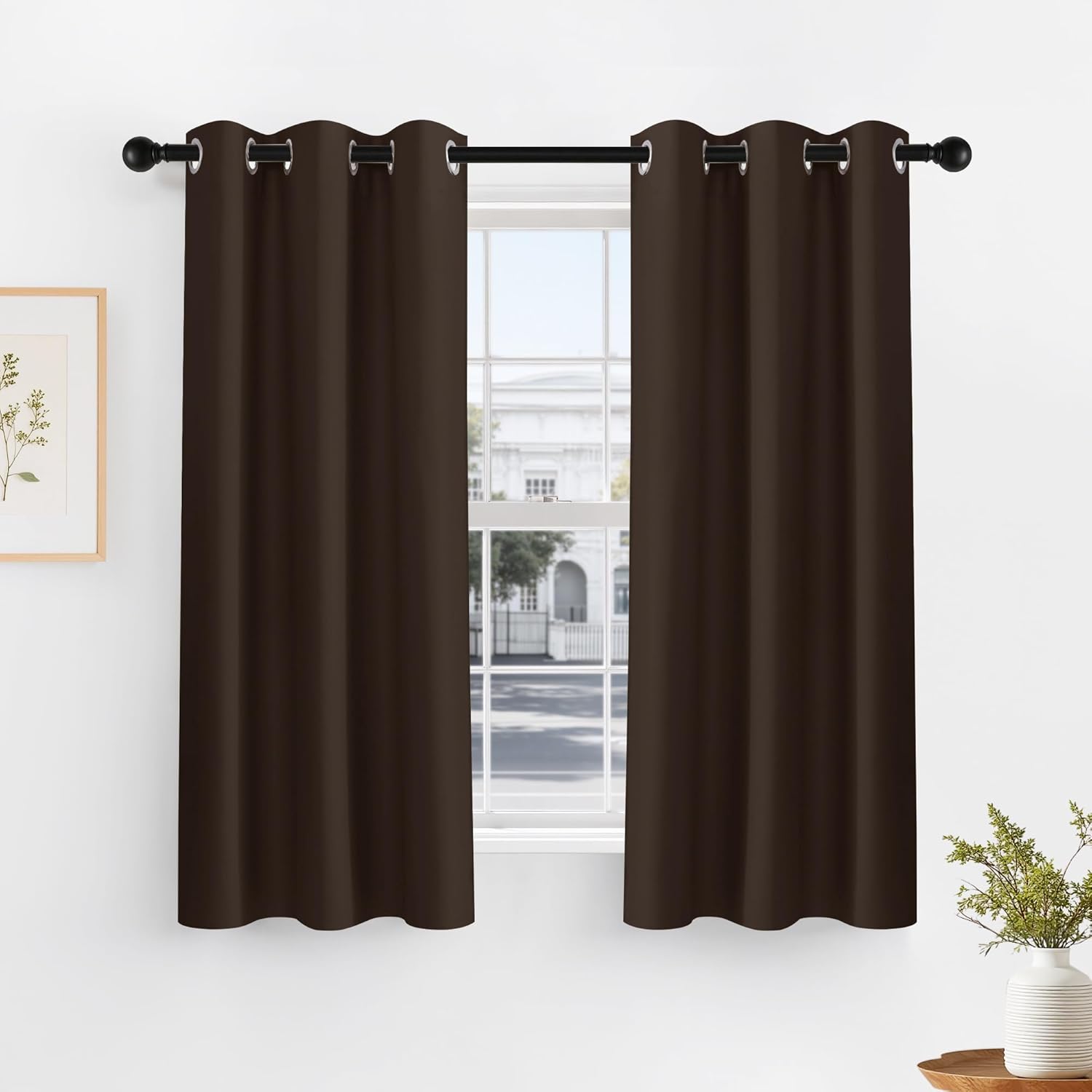 PONY DANCE Blackout Curtain Panels - Thermal Insulated Room Darkening Drapes Energy Saving Window Treatments Draperies for Small Window, 42 by 45 inches, Chocolate Brown, 2 PCs