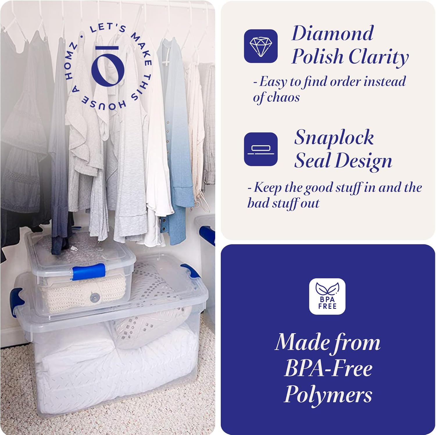 HOMZ 2-Pack Latching Lid, Large Clear Plastic Storage Bins with Lids, 66 Quart, Blue Latch - Stackable Container Boxes for Home, Bathroom, and Office Organization