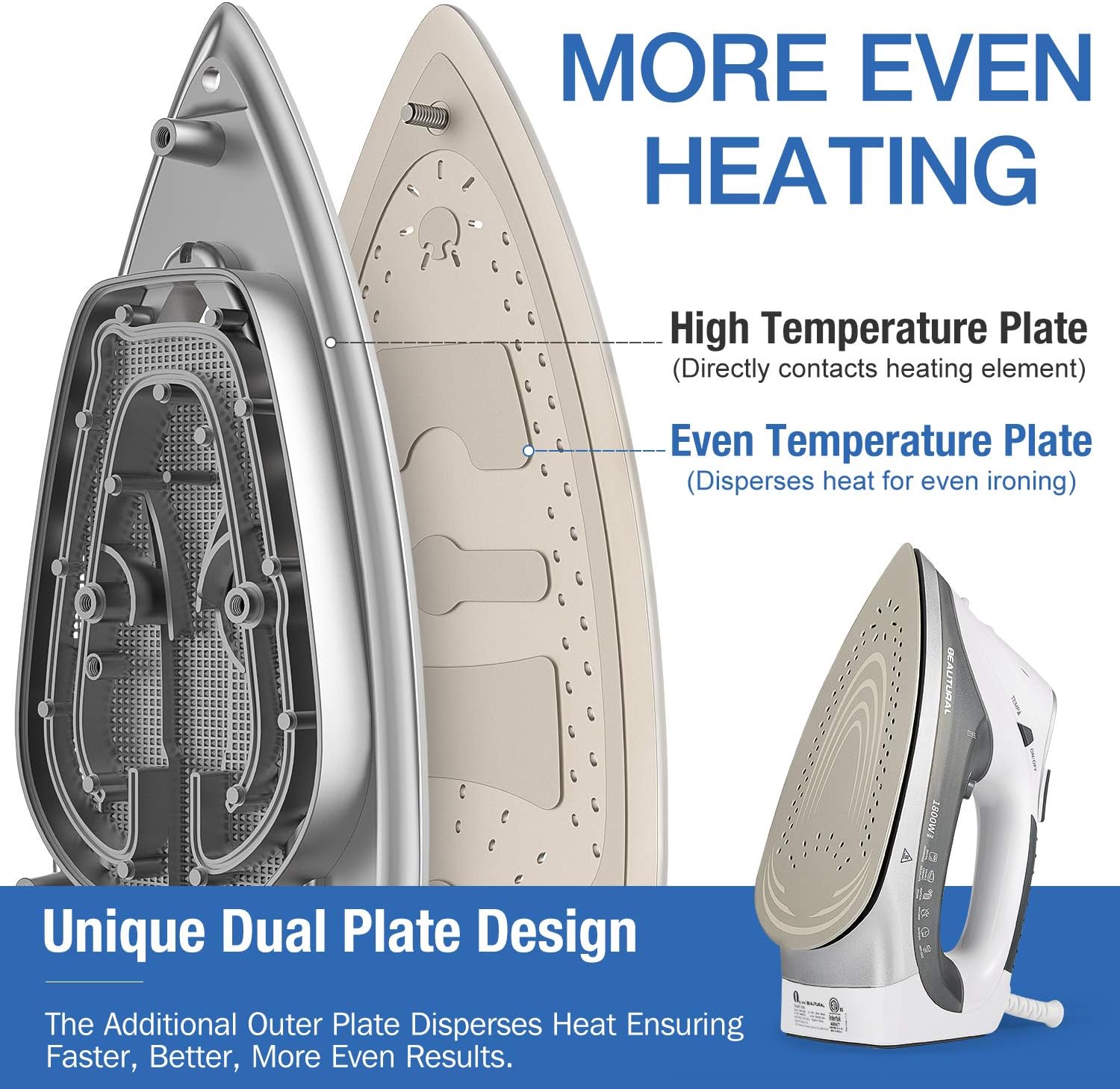 - Double Ceramic Soleplate: Harder than stainless steel, super scratch resistant, and more durable and easier to clean; Protect your delicate clothes with a unique double-layer design that ensures even heating of the entire soleplate