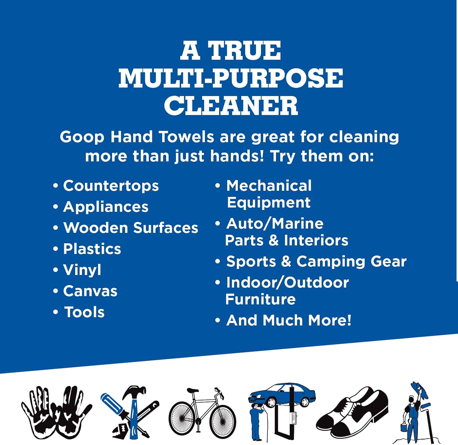 - šš±š²š®š¹ š³š¼šæ šµš²š®šš-š±ššš š°š¹š²š®š»š¶š»š“, these large, citrus-based pre-moistened towels are more powerful than other wet-type wipes, ensuring efficient removal of challenging substances such as grease, tar, ink, paint, and more. You can expect superior cleaning performance, thanks to the powerful formulation of Goop Towels. They effectively tackle stubborn grime and substances, making them a reliable choice for thorough and effective cleaning.