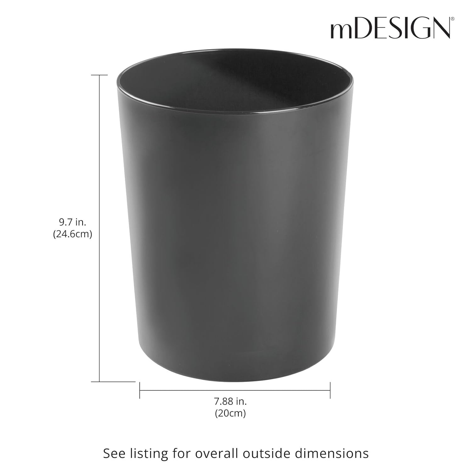 mDesign Round Metal Small 1.7 Gallon Recycle Trash Can Wastebasket, Garbage Container Bin for Bathrooms, Kitchen, Bedroom, Home Office - Durable Stainless Steel - Mirri Collection - Black