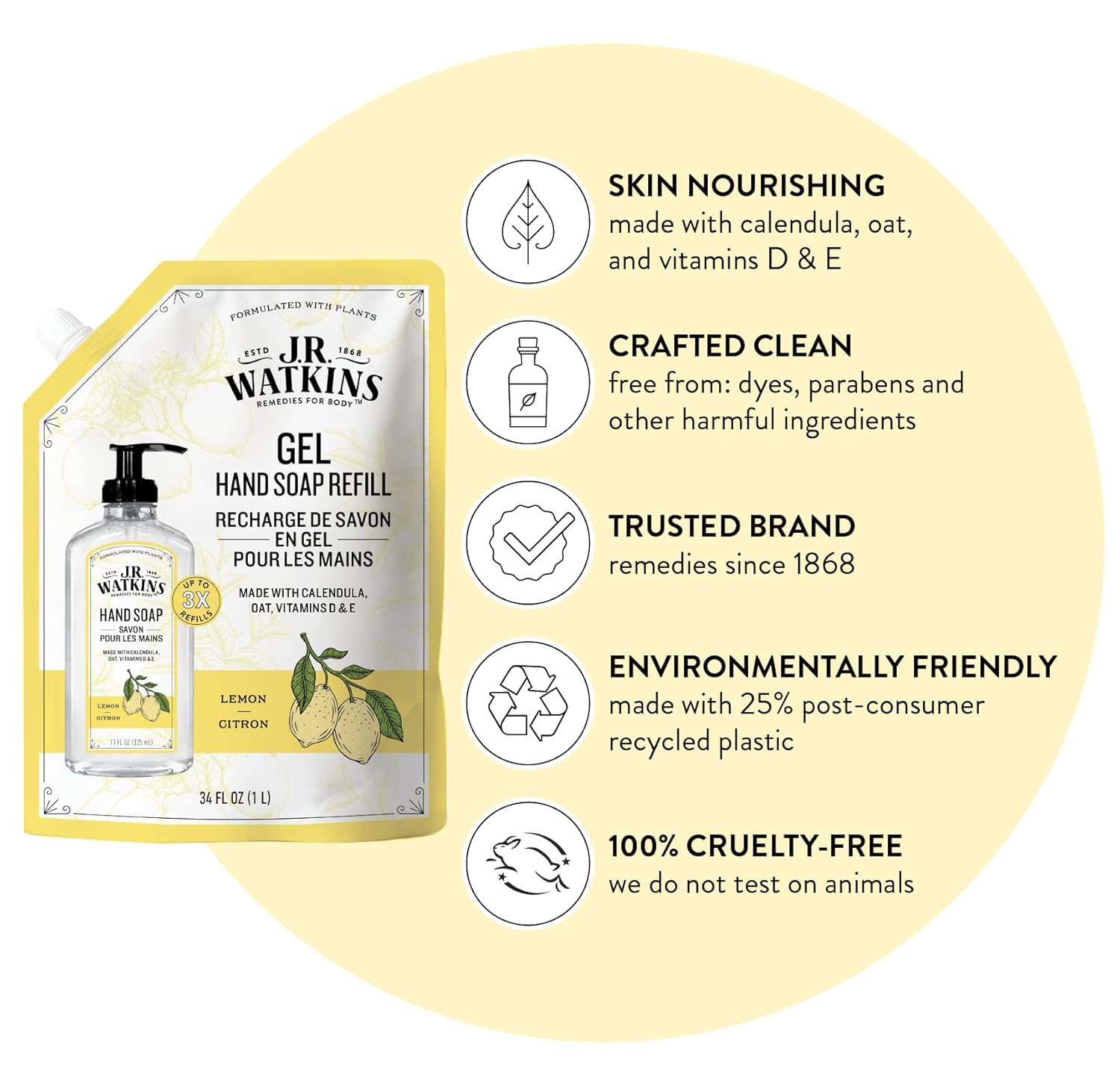 J.R. Watkins Liquid Hand Soap Lemon Refill, 34 Fl Oz