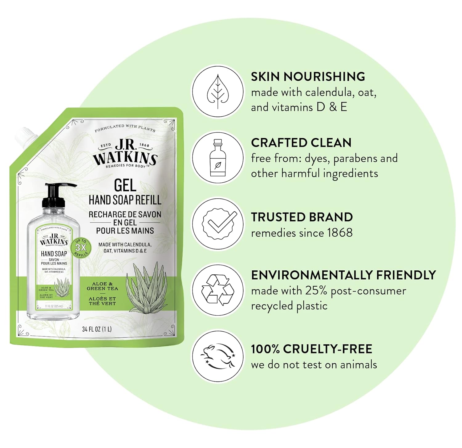 J.R. Watkins Hand Soap Refill, Aloe and Green Tea 34 fl Ounce