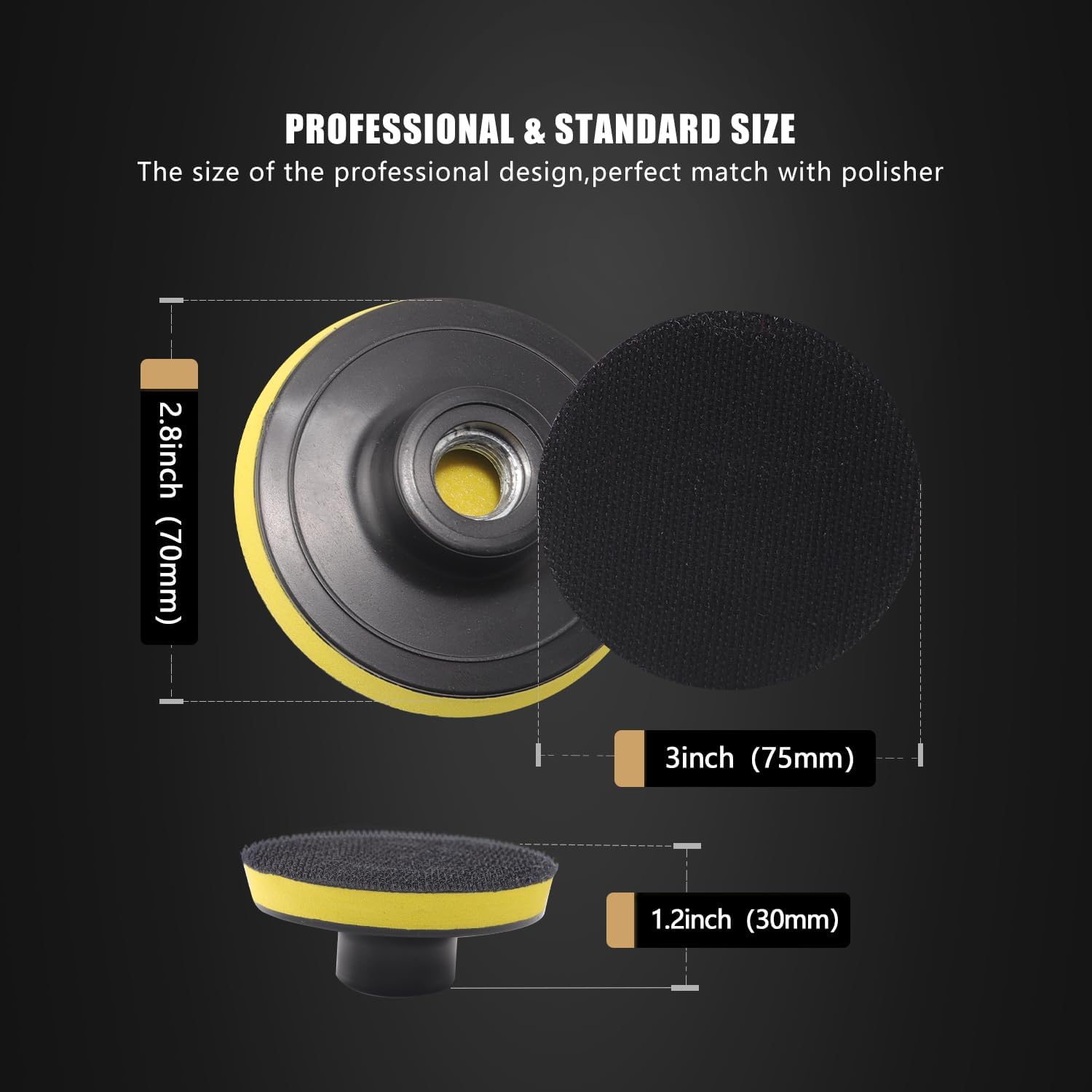 - ◆Easy To Use: With light weight and adhesive backing, really easy to assemble, you can replace pads just in seconds. Can be used in pneumatic or electric polishing machine or for auto car detail polishing.