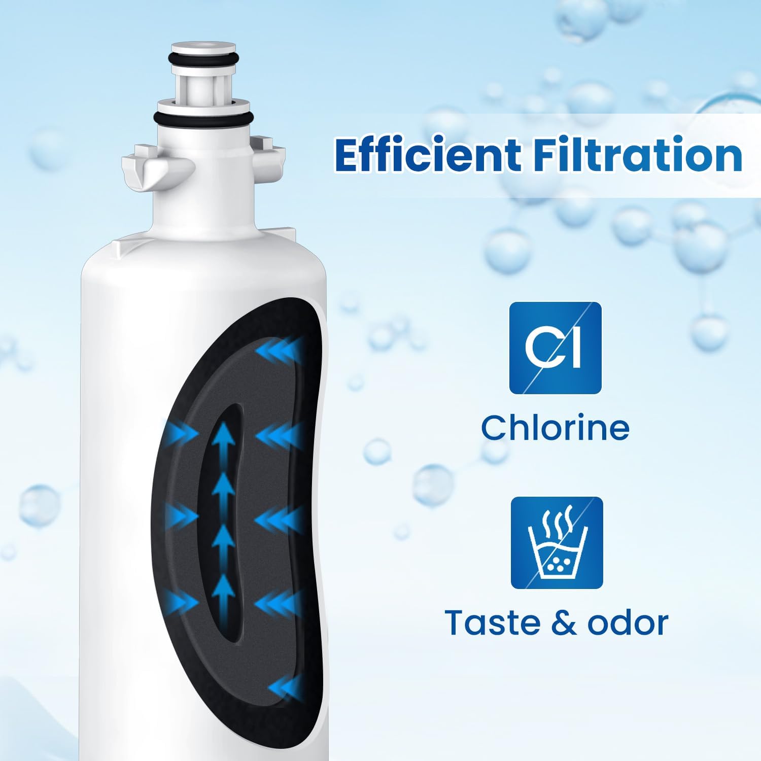 - Efficient Filtration Capacity: The GOLDEN ICEPURE refrigerator water filter reduces contaminants in your water, including 99% of chlorine, taste, THM, VOCs, particles, and other major impurities. This significantly improves the taste of drinking water, ensuring it is pure-tasting while retaining beneficial minerals.