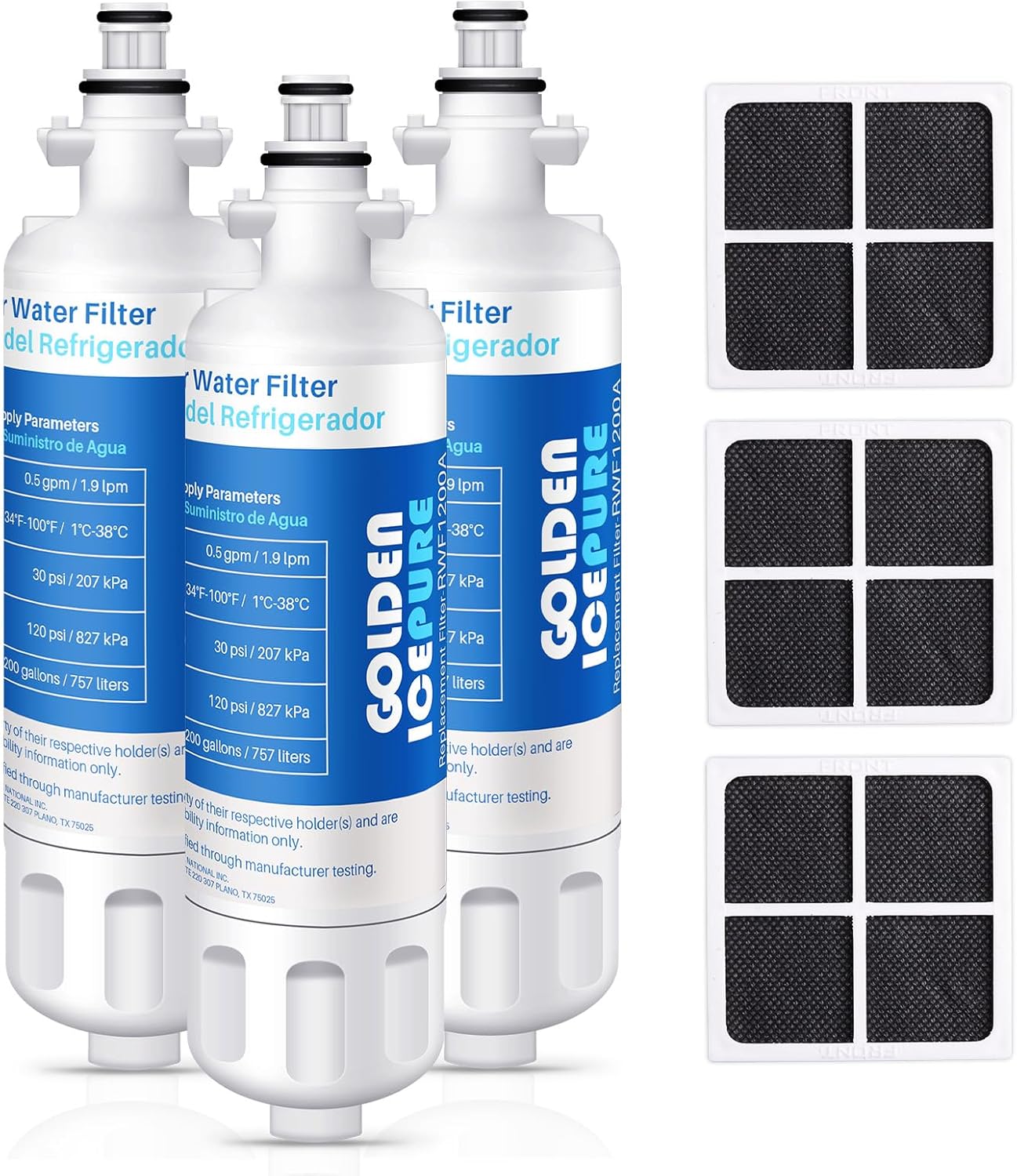 GOLDEN ICEPURE RWF1200A Replacement for LG LT700P, ADQ36006101, Kenmore 469690, Air Filter LT120F, 469918 Refrigerator LFX31925ST, LFX31945ST, LFX30766S, LFXC24726, LFXS24623 3PACK