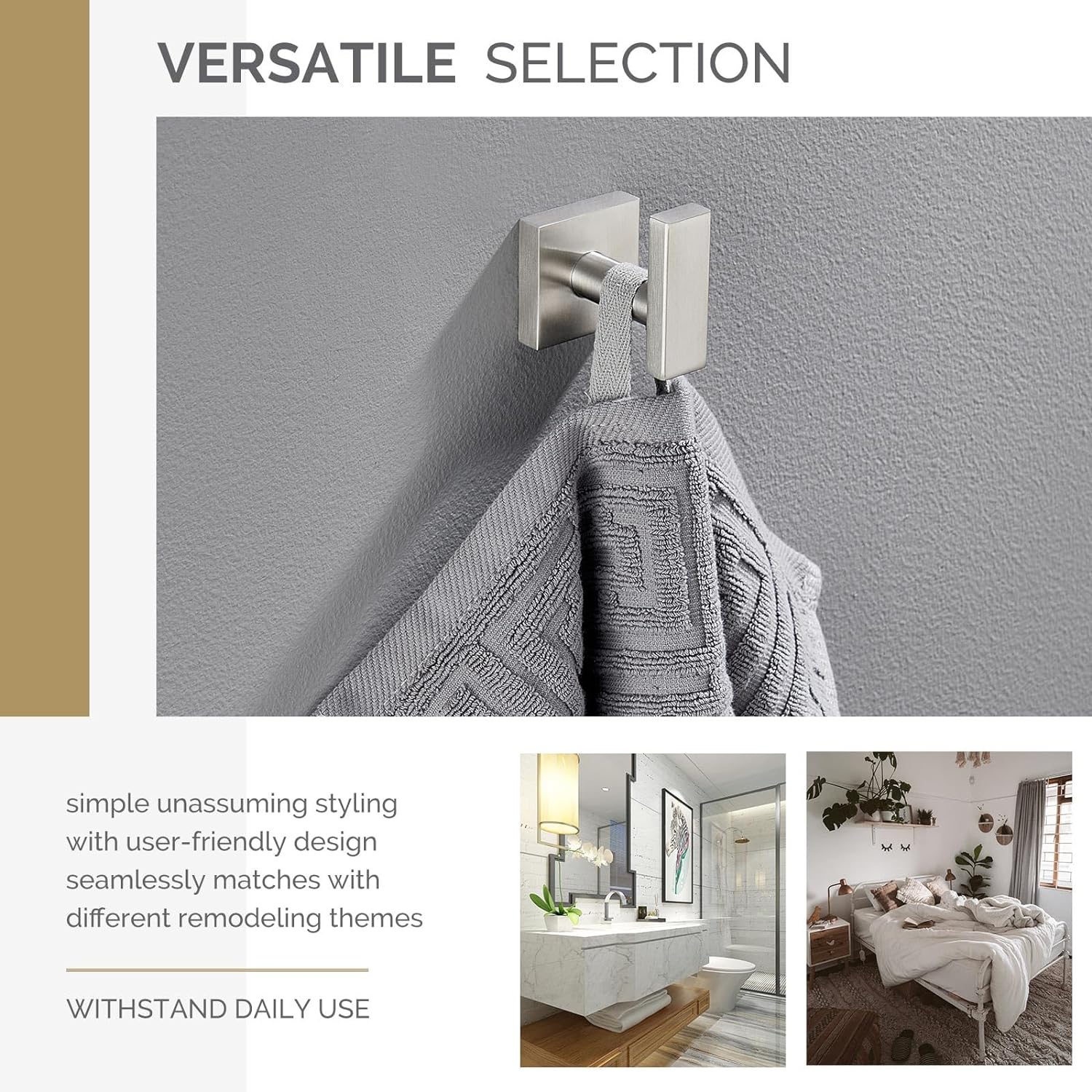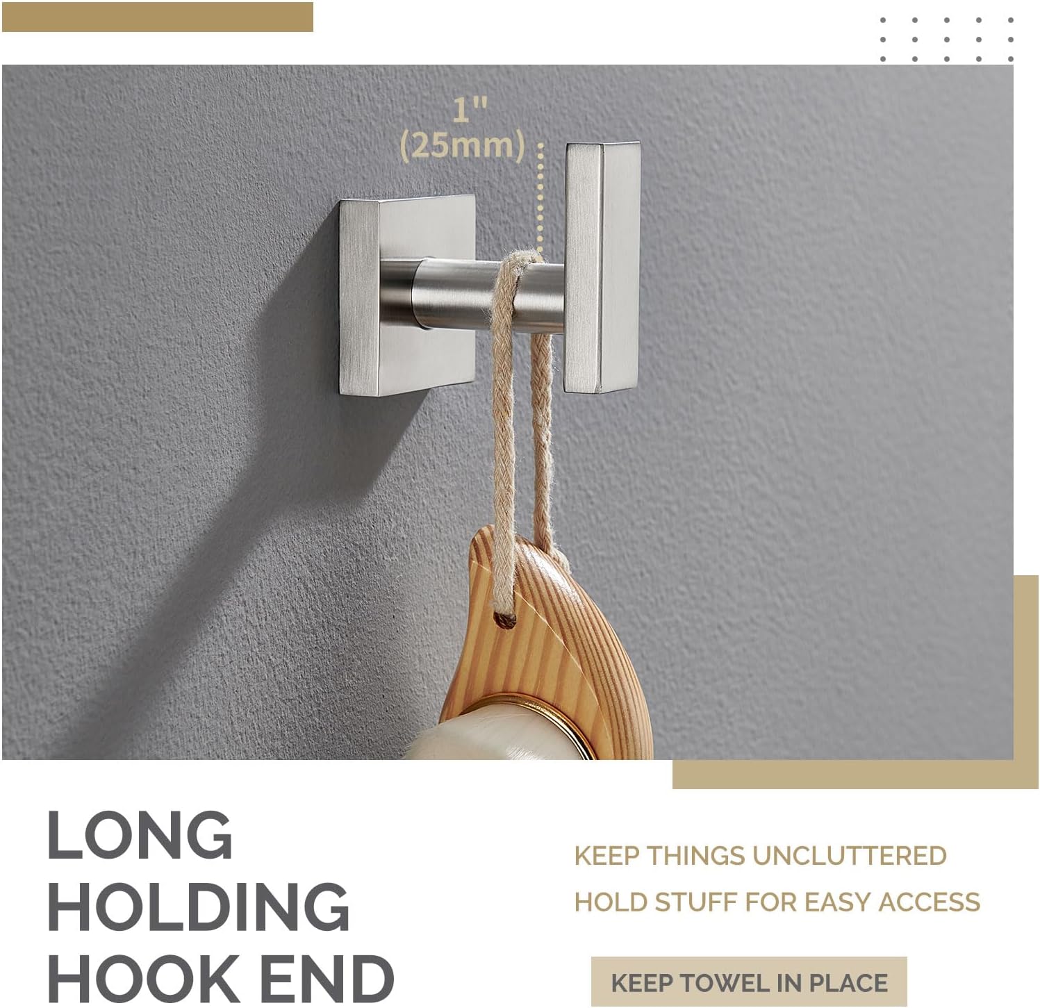Angle Simple Bathroom Towel Hook, SUS304 Stainless Steel Single Shower Towel Hanger for Wall, Kitchen Cabinet Closet Coat Robe Holder Wall Mounted, Brushed Nickel