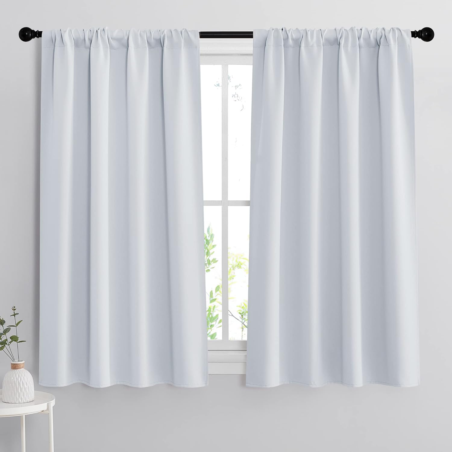 RYB HOME Window Curtains Room Darkening Energy Efficient Privacy Protect Drapes for Bedroom Living Room, 42 in Wide by 54 Long, Greyish White, 1 Pair