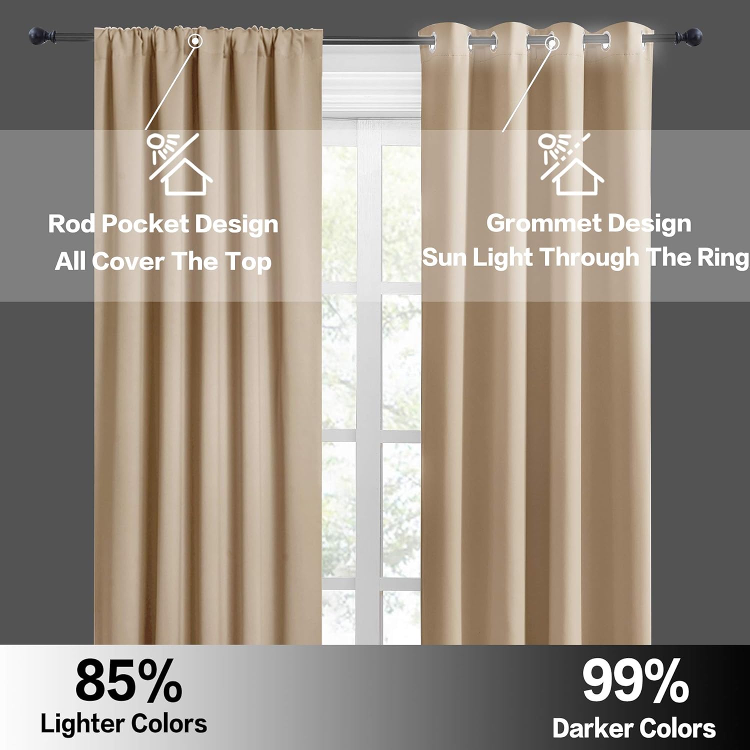 RYB HOME Blackout Shades Curtains Window Dressing (Width 42 by Height 72 in, Biscotti Beige, 2 Pcs) Energy Saving Curtain Draperies Soft Solid Polyester for Kitchen Bedroom