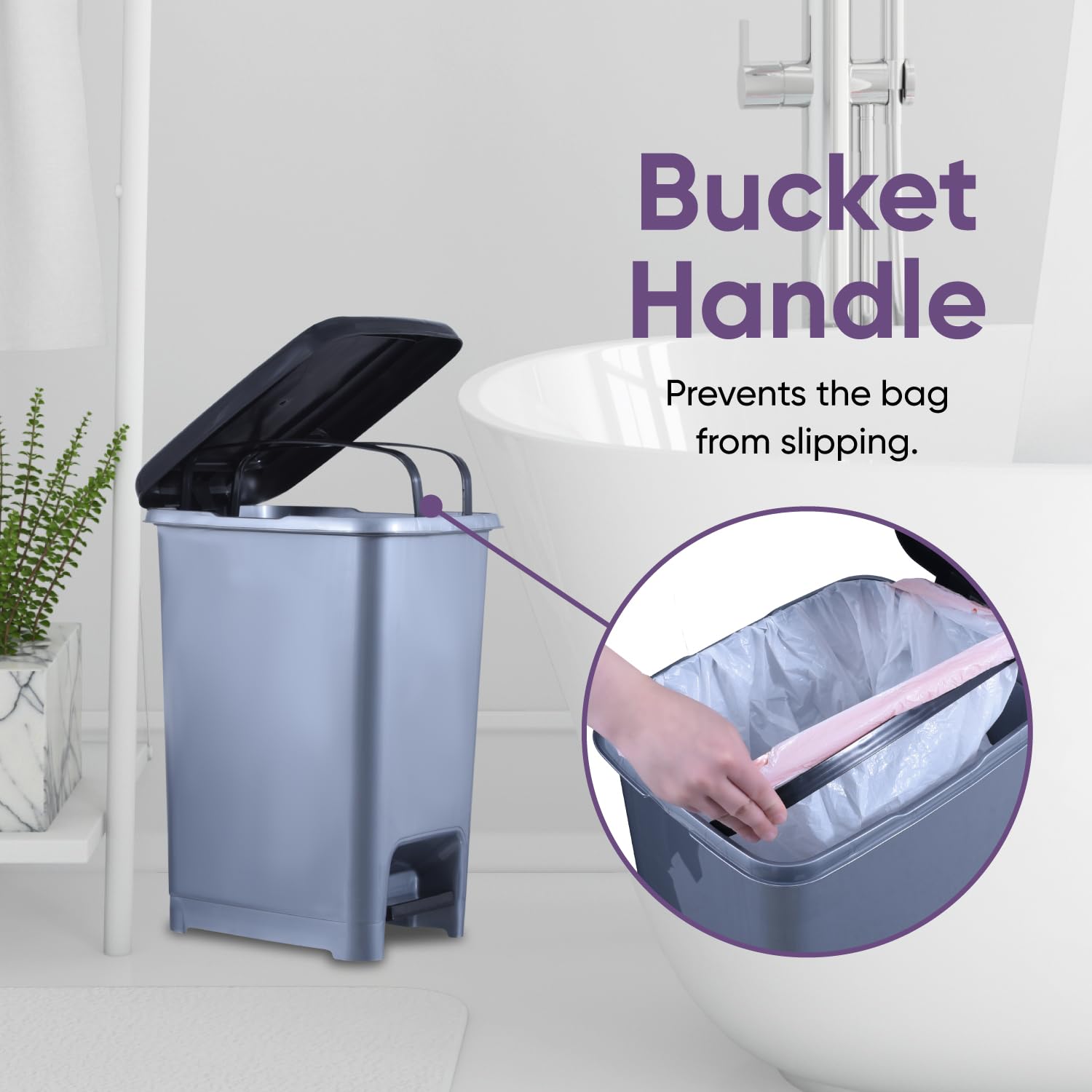 - INCLUDES INTERIOR BUCKET HANDLE – Superio Slim Garbage Can also comes with an easily removable inner bucket that will allow you to empty the trash quickly and efficiently! The interior bucket handle prevents the garbage bag from slipping so you never have to reach inside to pull out the bag. This feature allows for easy removal when it is time to change or empty the bag.