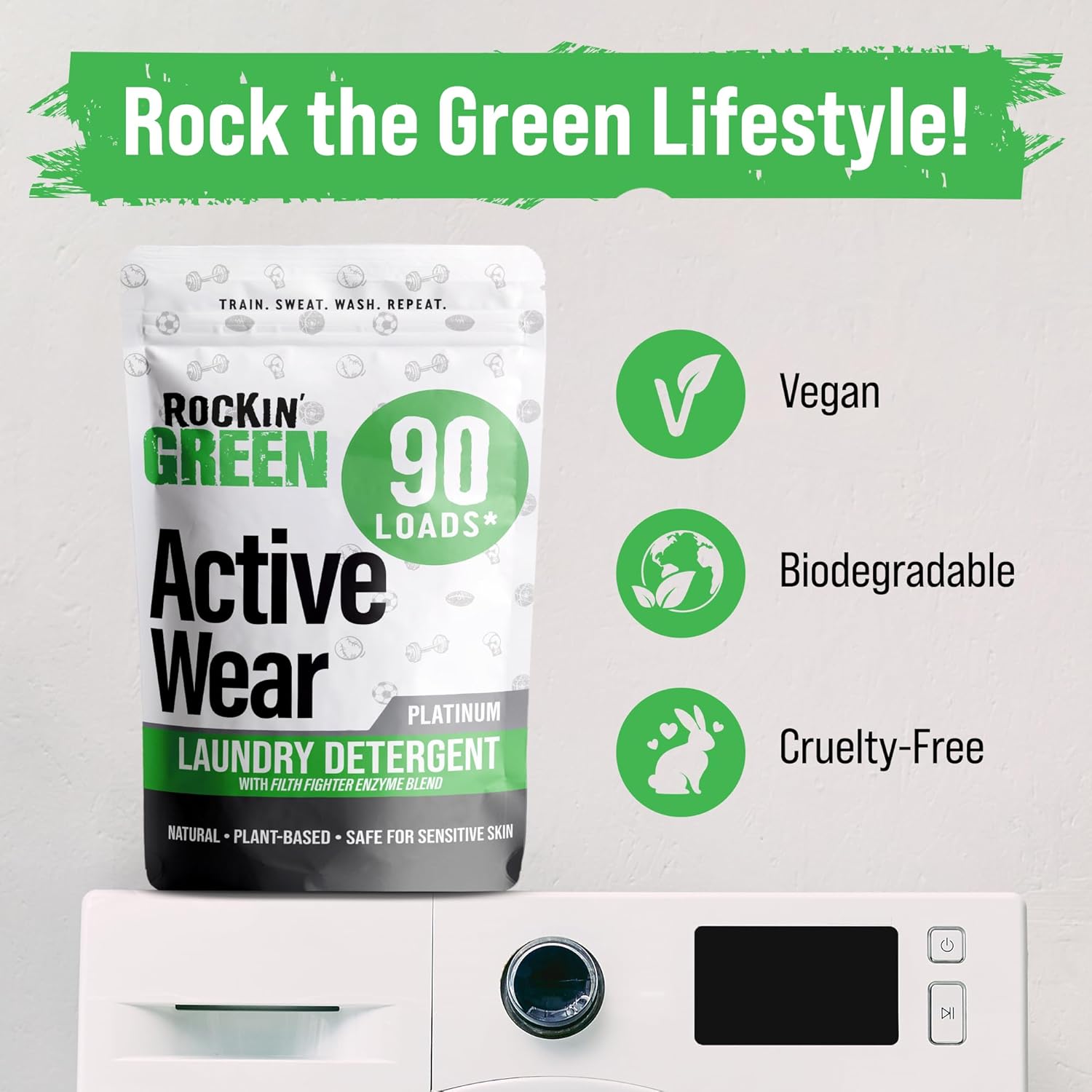 - Defeat Stubborn Stains and Odors - Rockin Green Activewear washing powder is formulated with powerful plant-based enzymes that break down even the toughest stains and odors from sweat. Enjoy clean and fresh workout gear, including leggings and gym shorts every time!