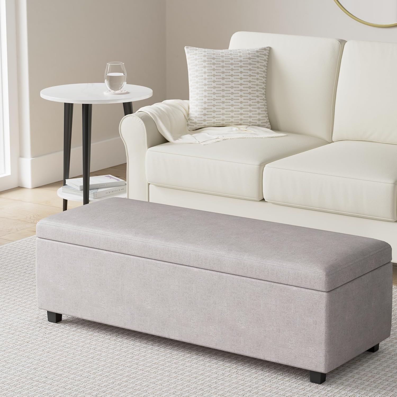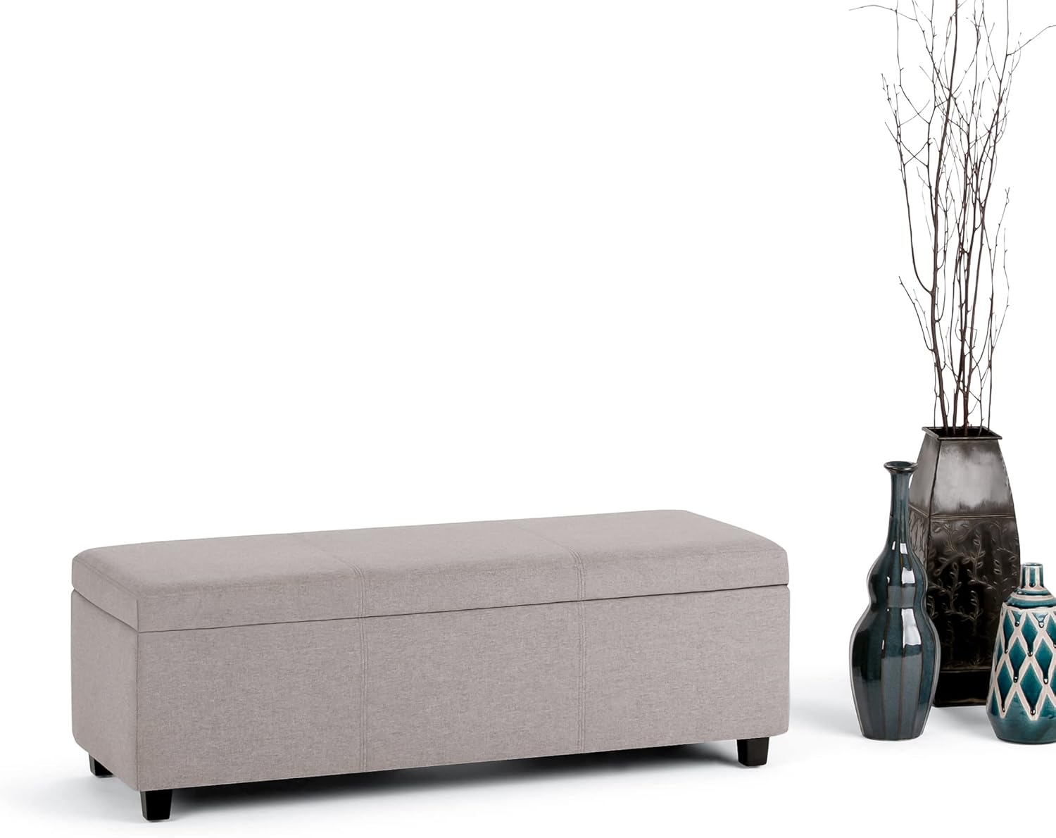 SIMPLIHOME Avalon 48 inch Wide Contemporary Rectangle Storage Ottoman Bench in Cloud Grey Linen Look Fabric, Assembled, for the Living Room, Entryway and Family Room