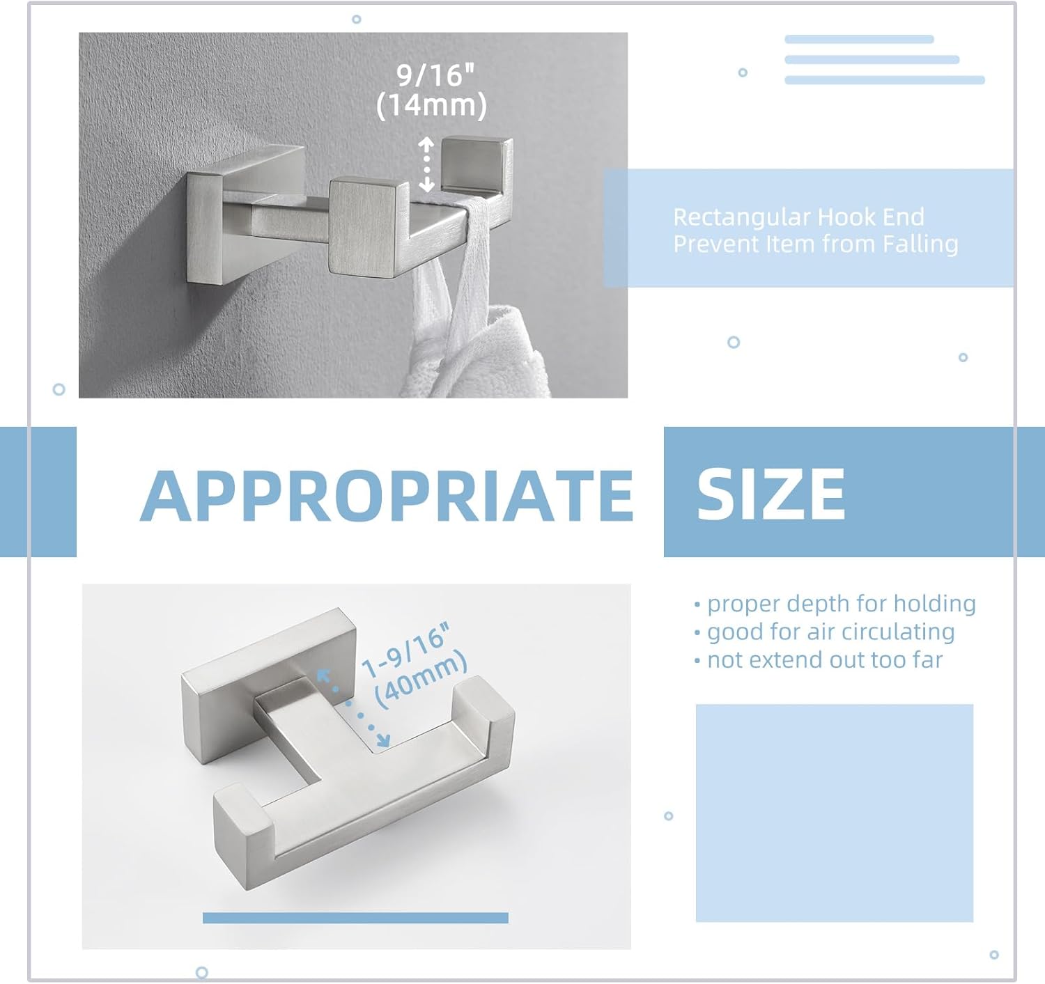 Angle Simple Towel Hook for Bathroom, SUS 304 Stainless Steel Double Robe Coat Hook, Hand Towel Hanger Wall Mount, Brushed Nickel