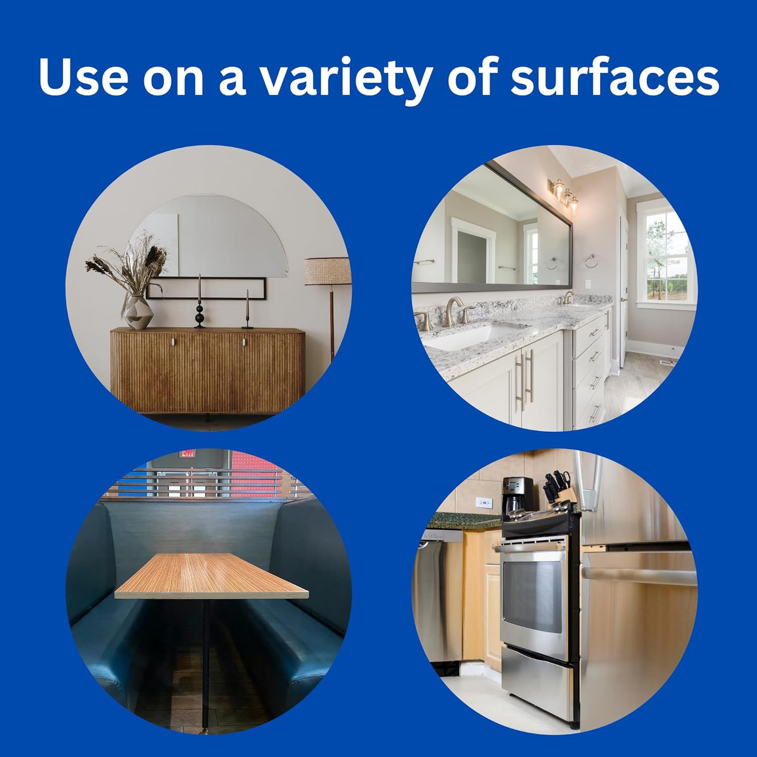 - Use on a variety of furniture surfaces including wood, painted and metal furniture/cabinets, chrome/stainless steel, vinyl and leather upholstery, plastic countertops and appliances.