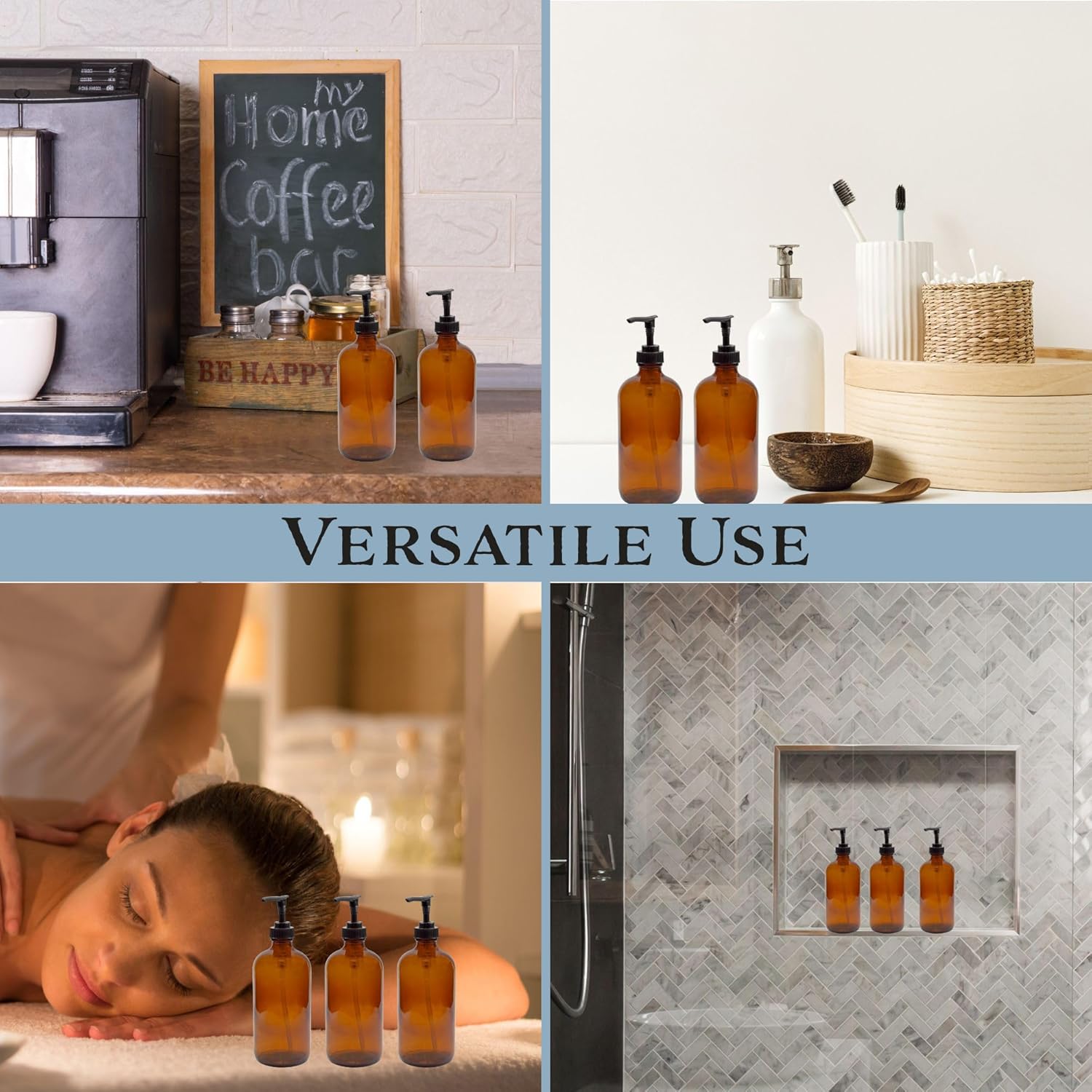 - AMBER GLASS: Amber glass provides UV protection for your contents, lead-free, food safe glass; LOCKABLE PUMPS: Twist to lock / close for storage & transport, pump tops in black plastic