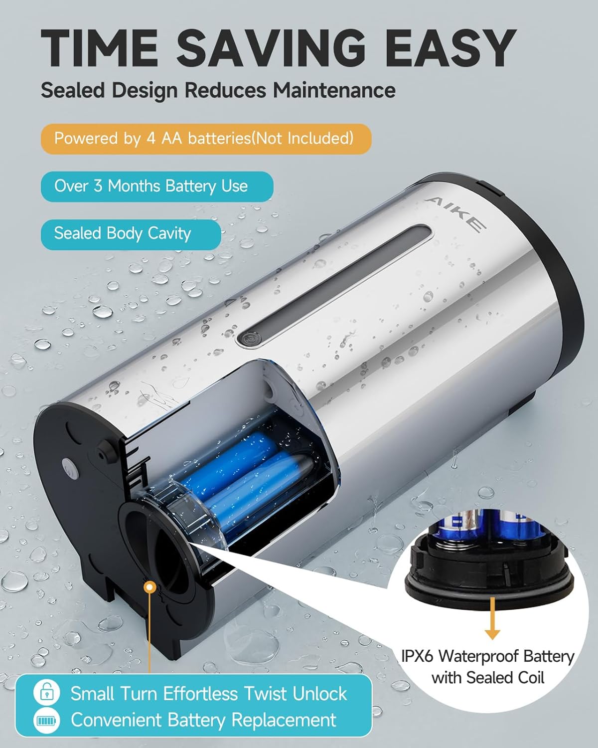 - Time-Saving: Powered by 4 AA batteries (not included). The sealed waterproof cavity and battery compartment with waterproof coil ensure long standby and easy maintenance