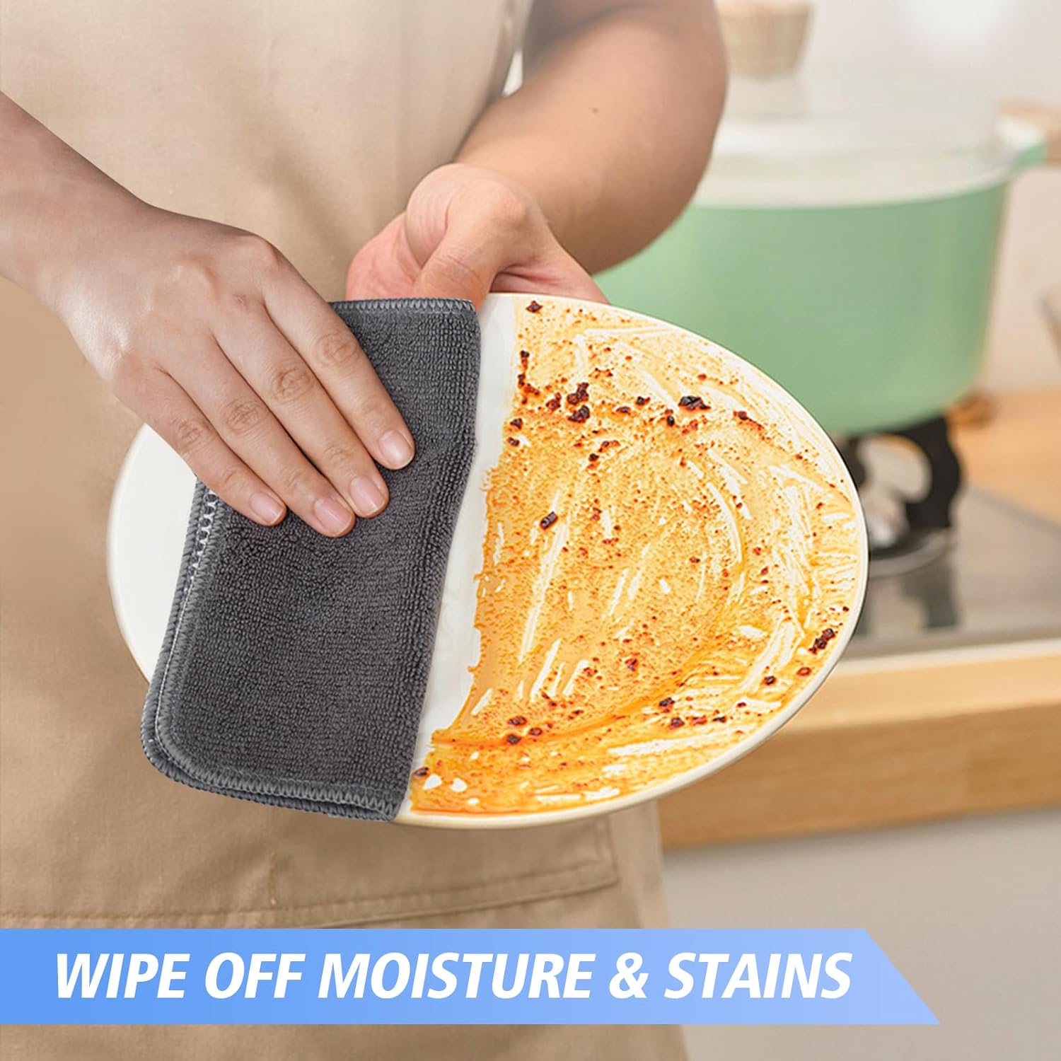 - SOFT & DURABLE MICRO FIBER DISH CLOTHS: They are made with a select 80/20 blend of microfiber for exceptional softness and durability. Soft enough to wipe stainless steel appliances, clean dishes, countertop and stovetop completely, rinse out well, and dry quickly