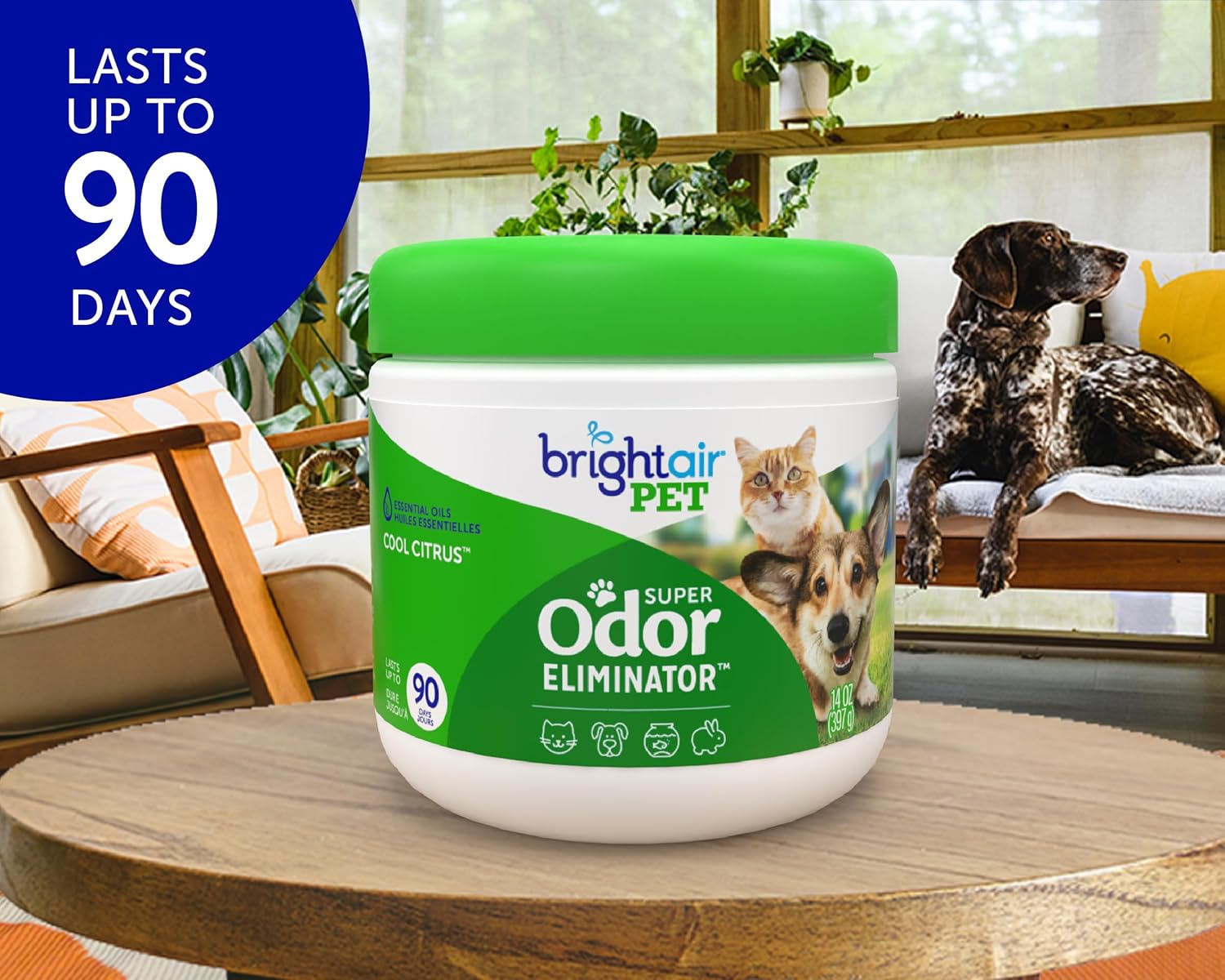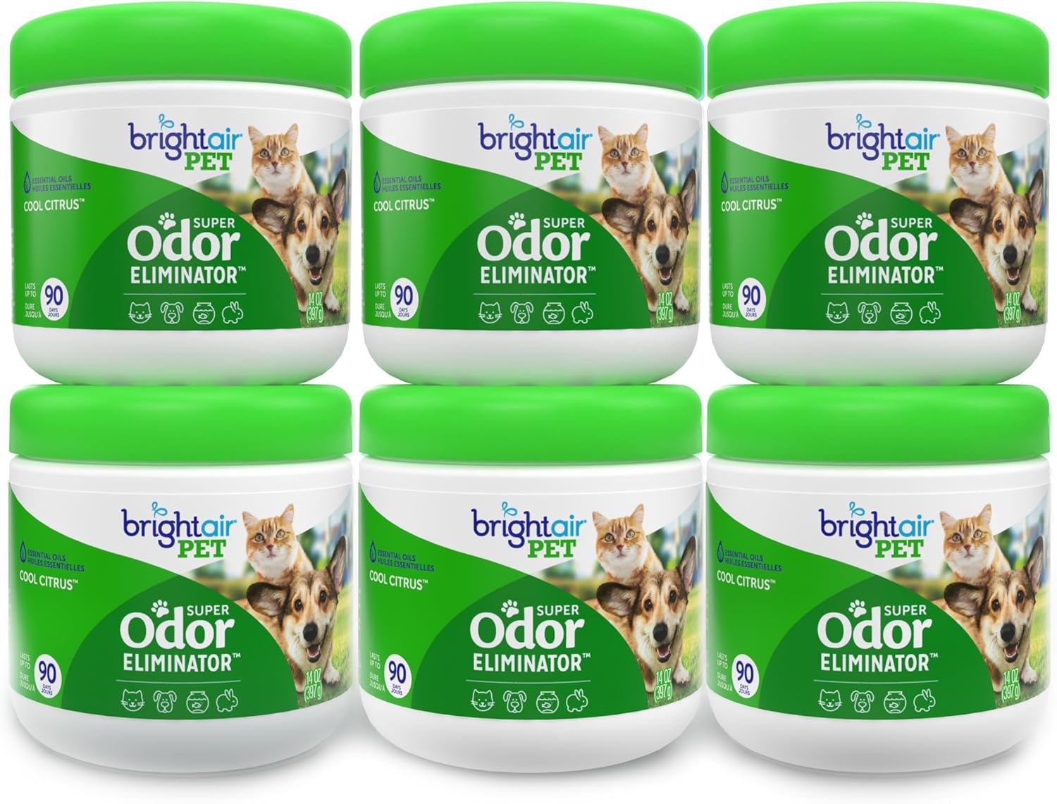 Bright Air 14 oz. Super Odor Eliminator, for Medium-Size Spaces, Cool Citrus Scent, Case of 6, Air Freshener, Natural Essential Oils, Lasts Up to 90 Days Each