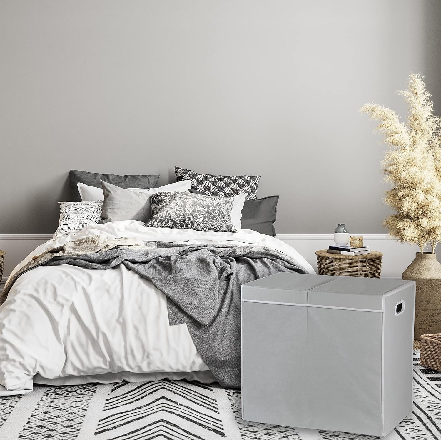 - Hamper with Lid : Lid secludes from smelly clothes and also keeps your dirty laundry out of sight.