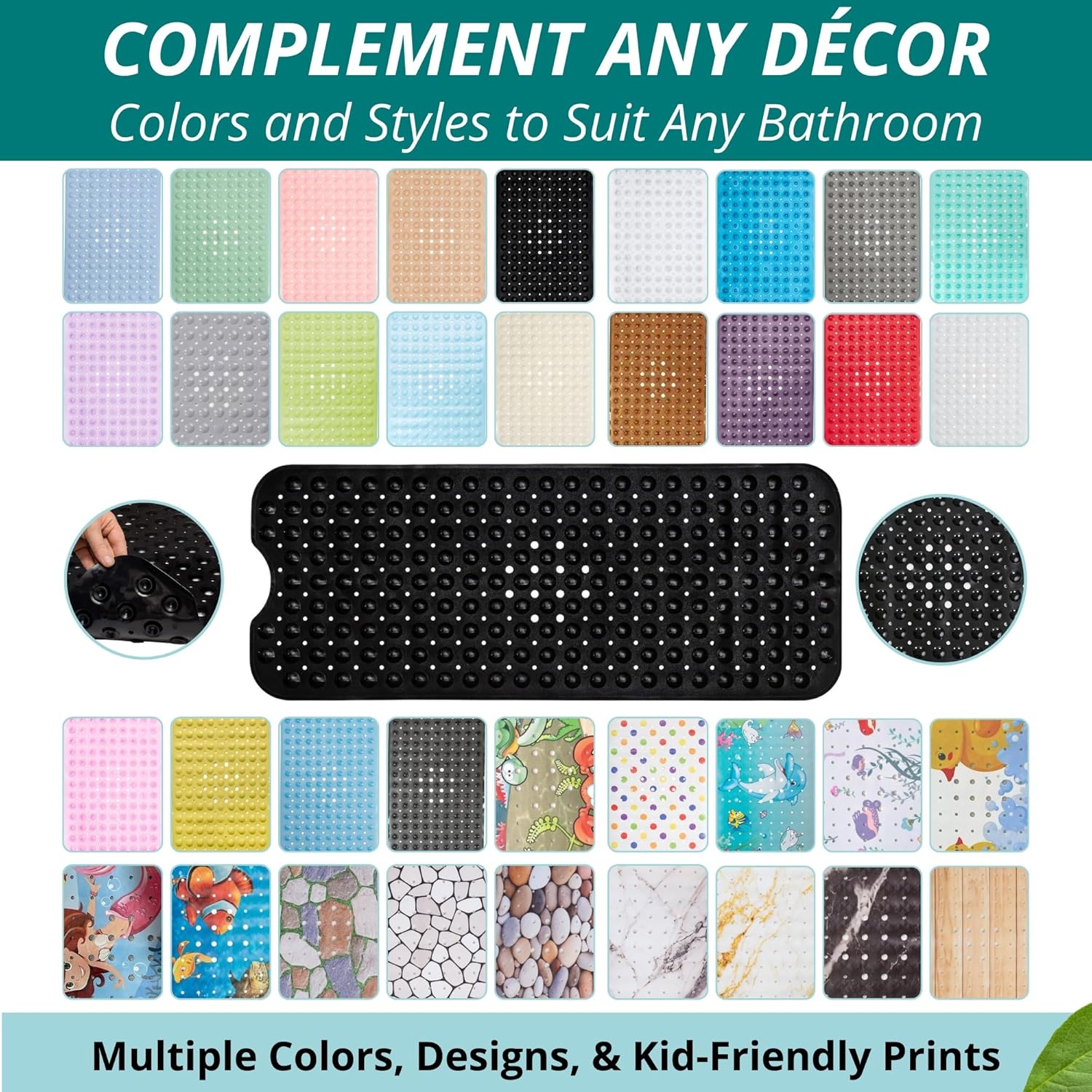 - Enjoy 360-degree Protection In Or Out Of Your Bathtub: with a premium manufacture bathmat, made of top standard anti slip material. It is a MAXIMUM grip tub/shower mat with 200 well-placed suction cups, for max sticking capacity.