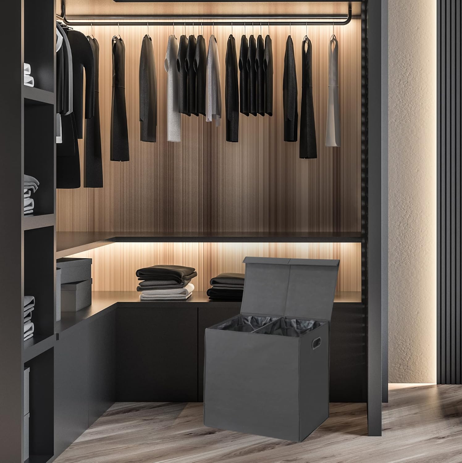 - Hamper with Lid : Lid secludes from smelly clothes and also keeps your dirty laundry out of sight.
