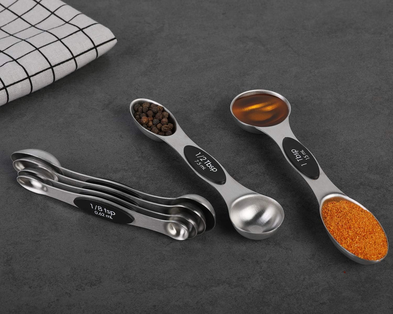 - MAGNET STACK: The magnetic set allows the spoons to nest and stack compactly for storage in your kitchen drawer. They lay flat on your counter top without tipping over.