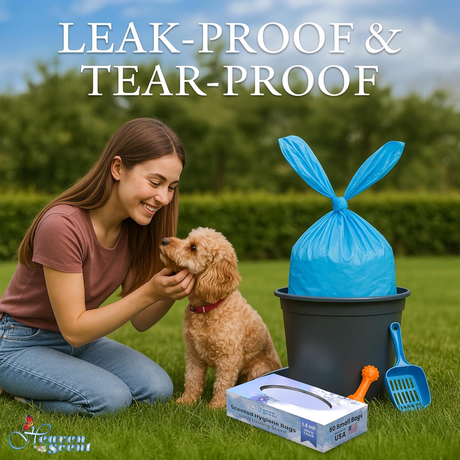 Heaven Scent Hygiene Bags 1.5MIL ULTRA-THICK Discreet Waste Disposal | MADE IN THE USA | Mild Baby Powder Scented Trash Bags for Adult Briefs & Feminine Products - Small, 50 Bags