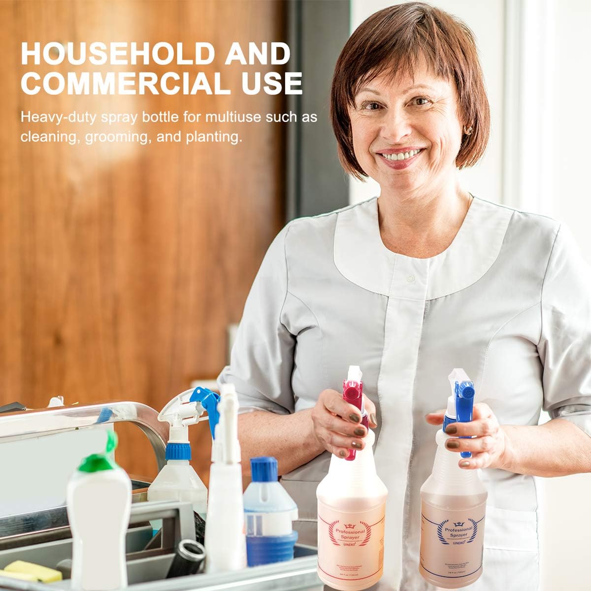 - HOUSEHOLD-COMMERCIAL-INDUSTRIAL USES - Our plastic spray bottles is for multi purpose uses, each bottle is BPA-free, use them for food spraying, cleaning solutions around the house, pet, cat, lawn and garden, misting and watering plants, succulents, herbs, ironing, laundry, car cleaning, janitorial. Make your own homemade diy cleaner mister or just use with water to cool yourself.