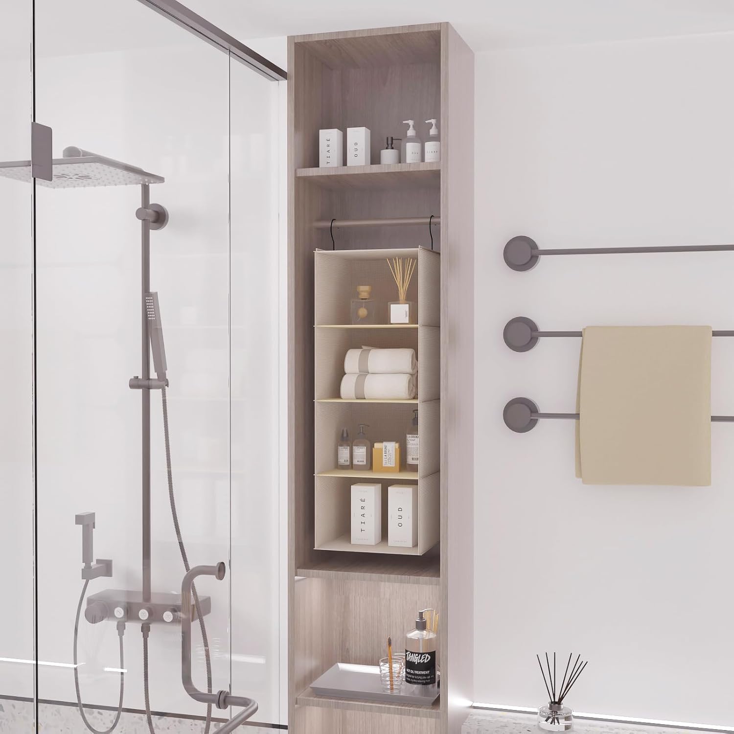 - Dimensions: The organizer measures 11.8'' W x 11.8'' D X 35.8'' H (Hooks Included). Each unit is 11.8'' W x 11.8''D x 7.9'' H. 3 shelves will meet your storage needs where is placed in short wardrobe or in camper closet
