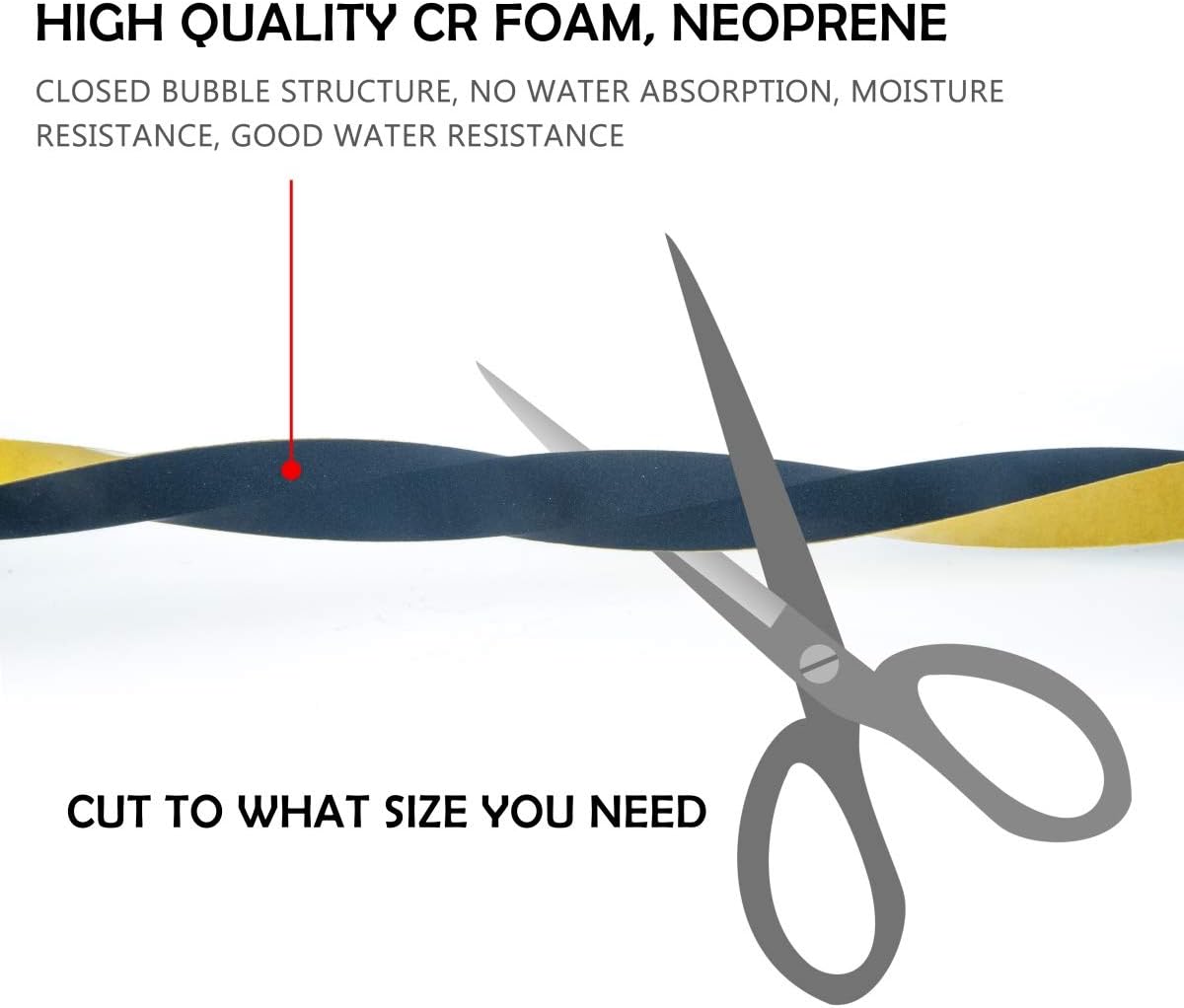 - 【ADJUSTABLE & FLEXIBLE】This package includes 2 rolls of 1/2 in x 3/8 in x 6.5 ft foam tape, total 13 feet long.The Neoprene sponge foam tape is easy enough to customize and cut to size with scissors or blade, and bend easily and conform to any shape.We used a high quality, ultra-strong adhesive backing that ensures this insulation foam tape stays in place indefinitely once applied. You are therefore assured that it will not peel off.