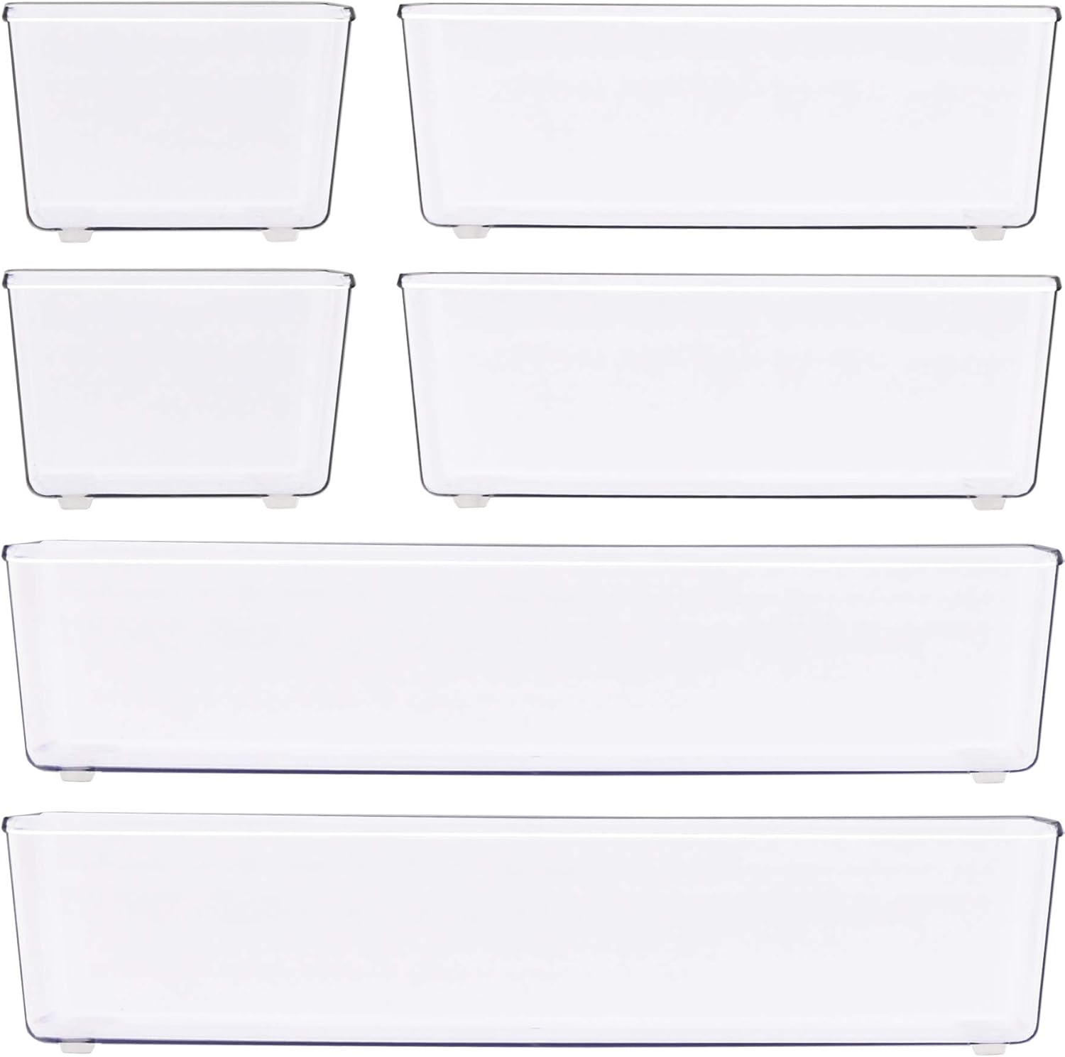 Simple Houseware Clear Drawer Organizer for Office Bin Desk Storage, Assorted Size, 6 Packs