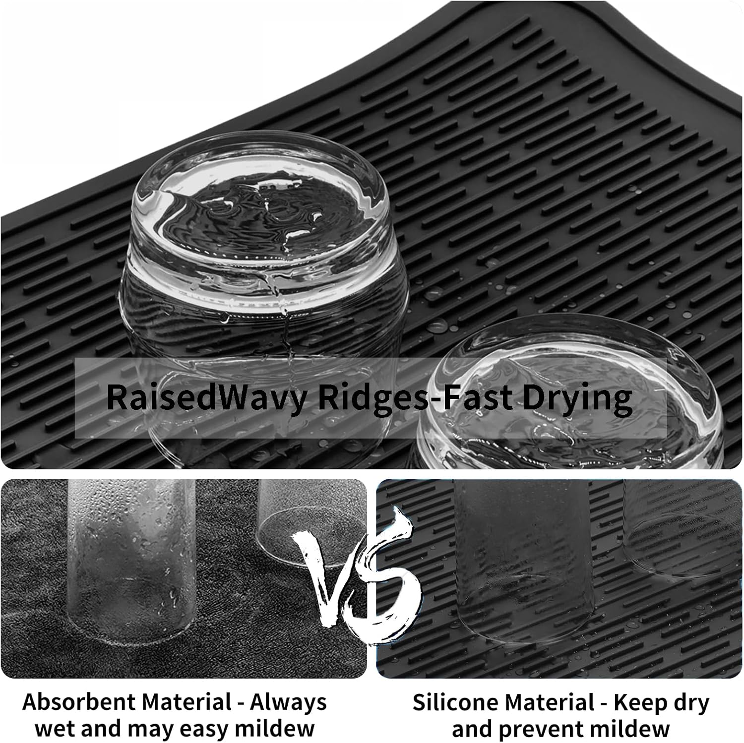 ZLR Silicone Dish Drying Mat for Kitchen Counter, Eco-Friendly Fast Dry Dish Mat, Easy Clean Multi Usage Drying Matt, Heat Resistant Trivet, 16" x 18" XL, Black