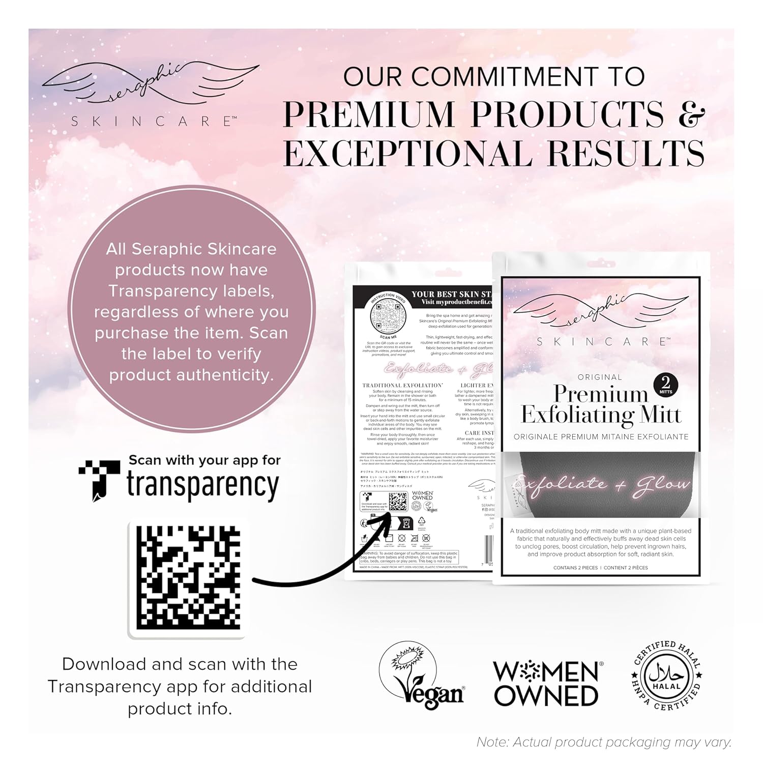 Seraphic Skincare (Original) Premium Exfoliating Mitt for Body (2pc) – 100% Vegan Viscose Traditional Body Scrub Glove Kessa Korean Washcloth – Body Exfoliator for Self-Tan Removal & Keratosis Pilaris