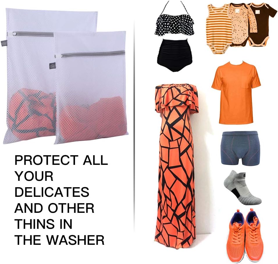 - 【Come in 2 Pieces】 1M (12x16 inch) & 1L (16x20 inch), perfect for washing underwear, socks, hosiery, tights, baby clothes, silk blouese, lace garments, t-shirts, derss shirts, swimsuits, gloves and scarves