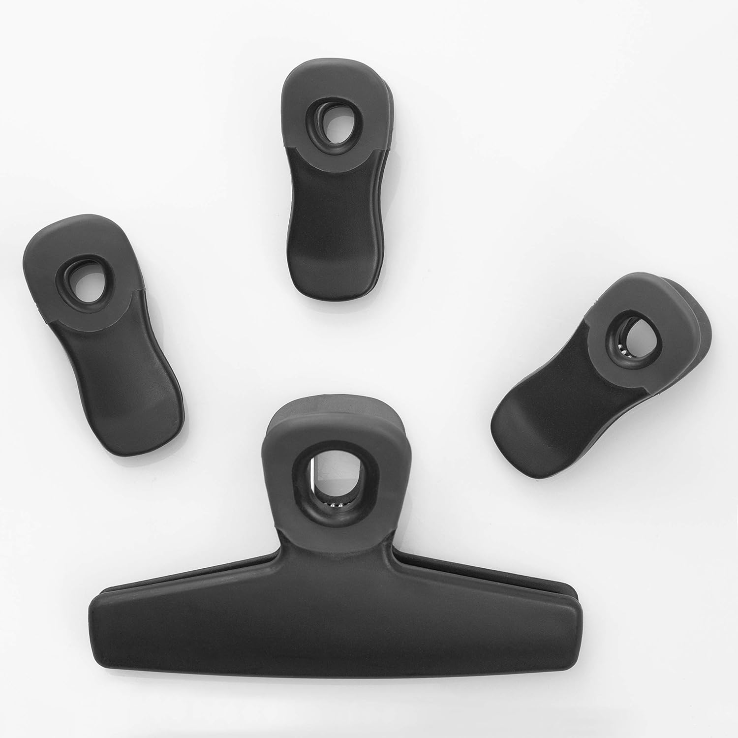 COOK WITH COLOR Bag Clips, Heavy Duty Chip Clip and Refrigerator Magnet Clips for Food Storage with Air Tight Seal Grip for Snack Bags and Food Bags (Black, Pack of 8)