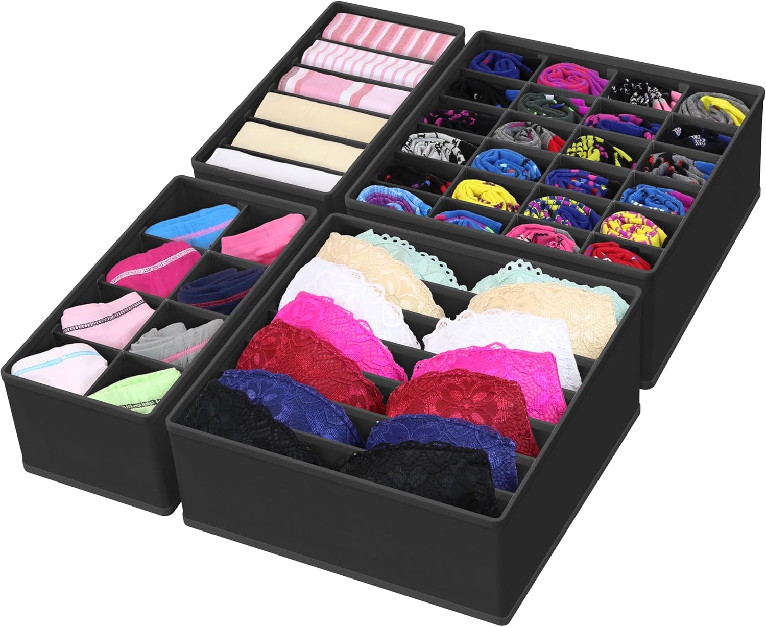 Simple Houseware 4-Pack Drawer Organizer Set - Closet Dividers for Underwear, Socks, Bras, Scarves, Ties - Foldable Non-Woven Storage Boxes, Black
