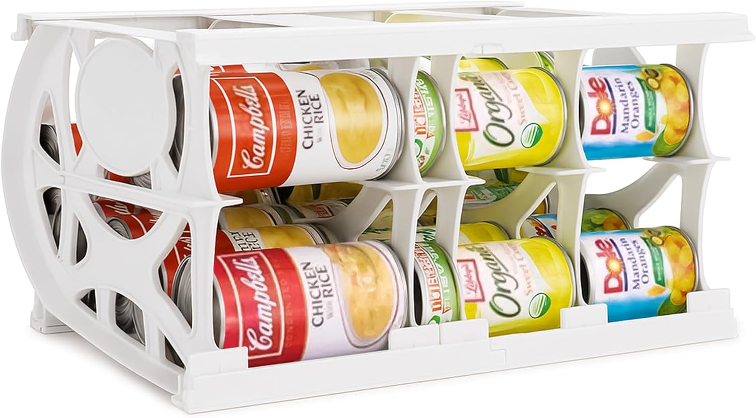 - MAXIMIZE SPACE, MINIMIZE MESS - The Cansolidator Pantry is a rotating can organizer that holds up to 40 cans, keeping your pantry, cupboards, or fridge neat and clutter-free.