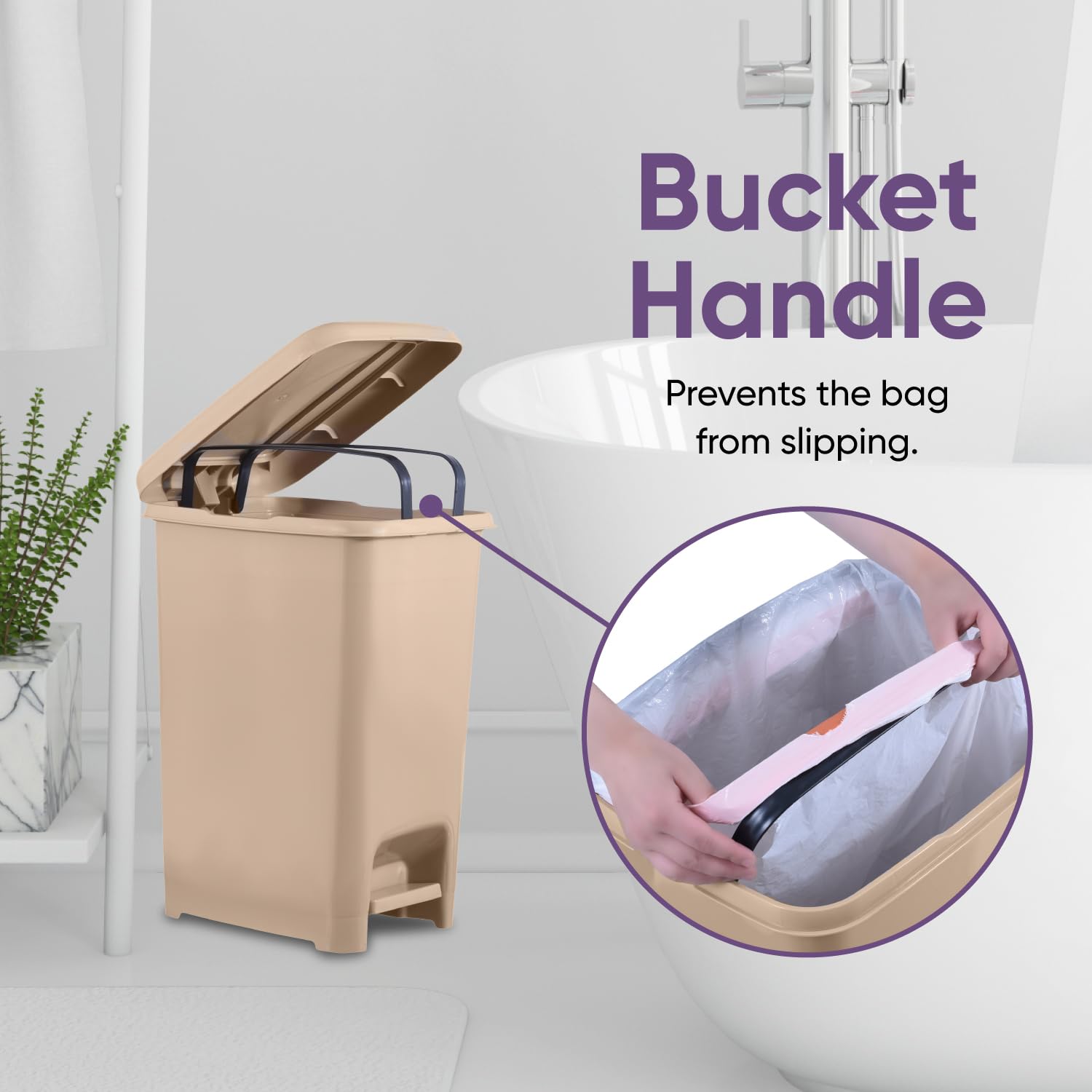 Superio 2.5 Gal Slim Step On Pedal Plastic Trash Can, Waste Bin for Under Desk, Office, Bedroom, Bathroom- 10 Qt, Beige